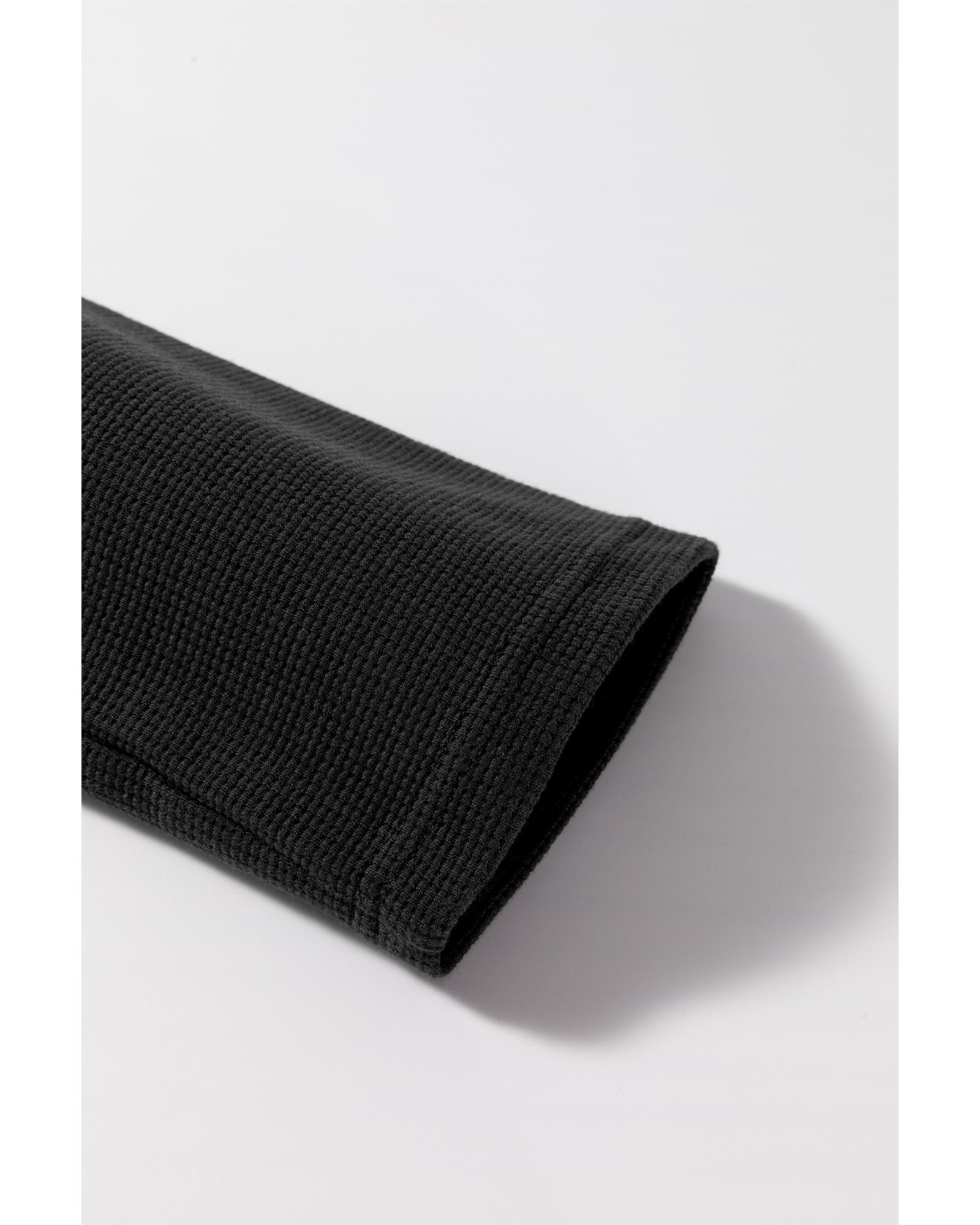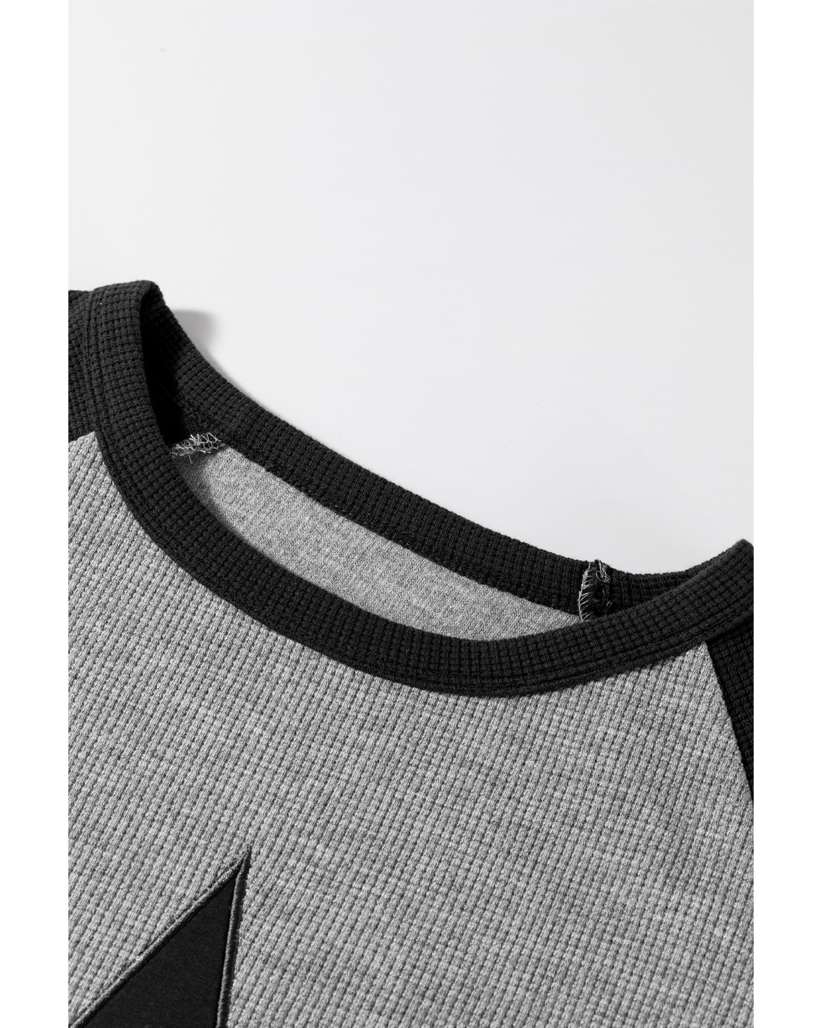 High Waffle Knit Colorblock Star Patch Graphic Raglan Top – S