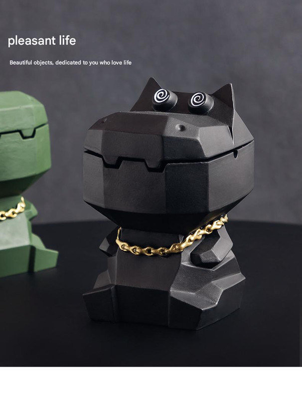 Add a touch of modern flair to your space with this Hippo Ashtray. Designed with a unique geometric shape and a playful hippo motif, this ashtray doubles as a chic decorative piece for your home or office.It features a lid to contain ash and odor, ensuring a clean and tidy environment. The thoughtful design includes a chain detail for added style, making it a perfect accent for any tabletop.