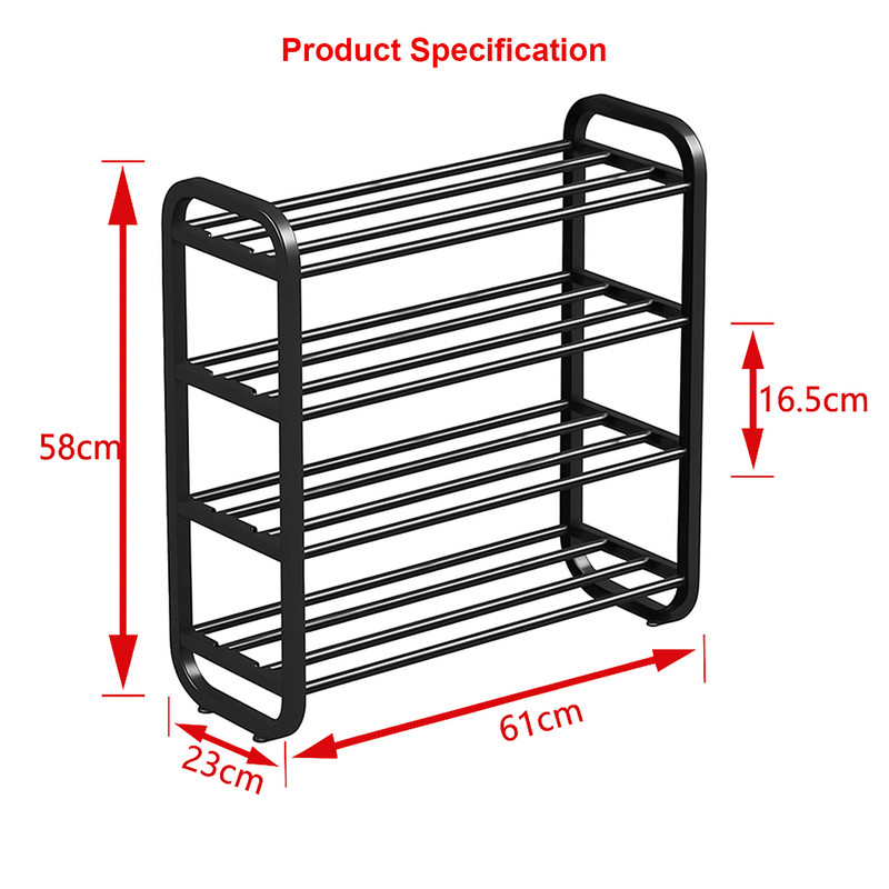 • Streamline your entryway and keep your shoes neatly arranged with the 4-Layer Shoe Rack Organizer. Designed to save space while offering durable support, this compact rack is ideal for homes, apartments, or dorms needing quick and easy footwear organization.