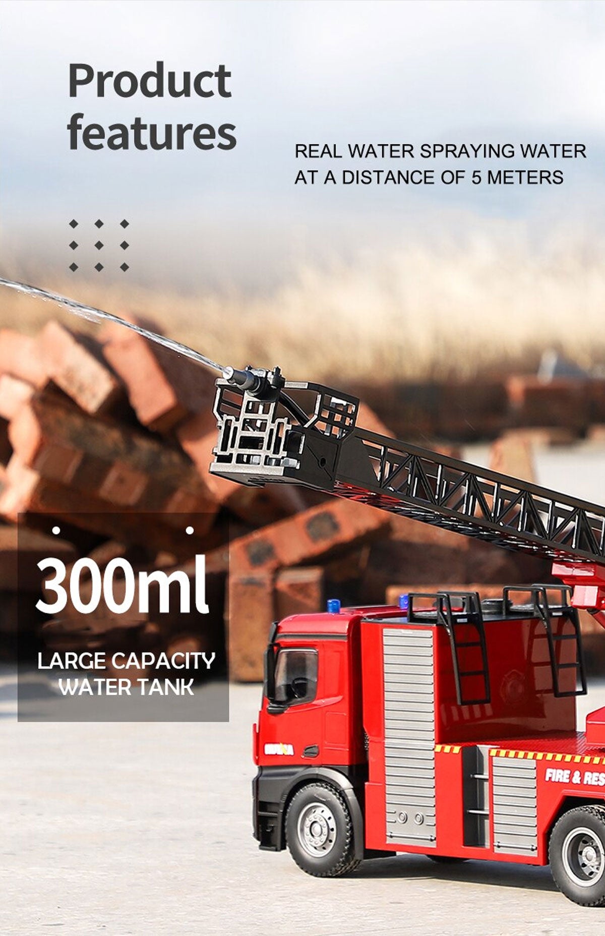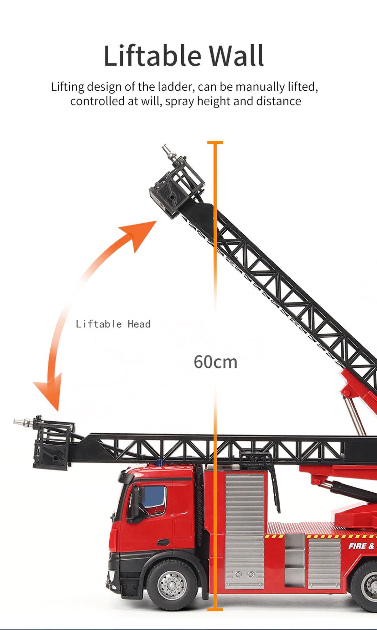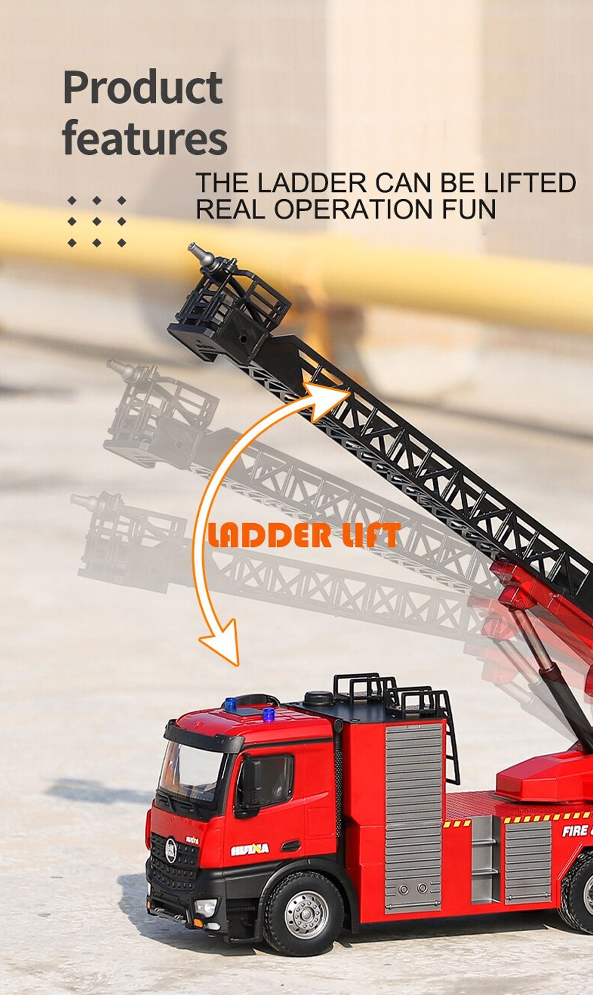 Huina 1:14 RC Fire Truck Extensible Ladder Toy Car Water Gun Construction Light Sound Gift
