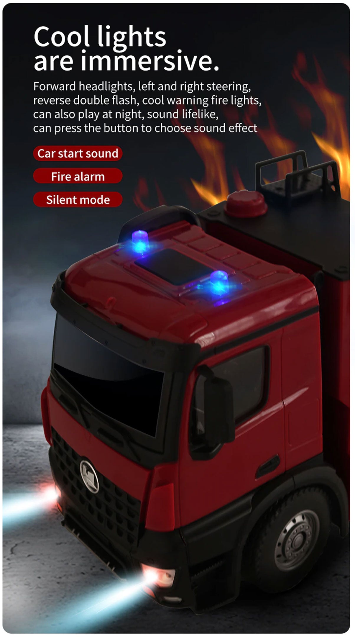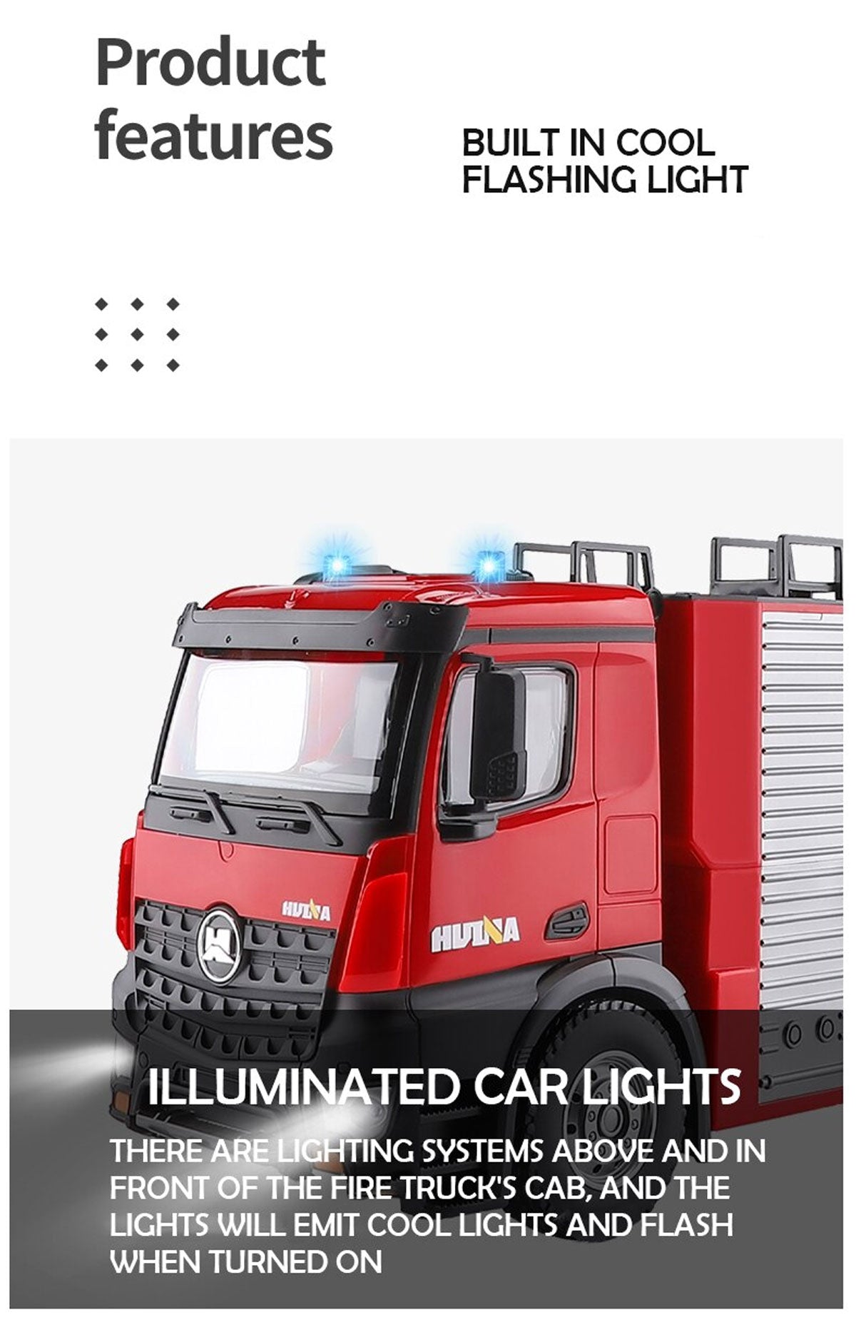 Huina 1:14 RC Fire Truck Toy Car Water Cannon Gun Construction Kids Toy