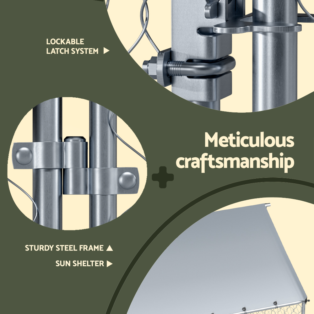 Keep your dog protected and entertained outdoors with the i.Pet Outdoor Dog Kennel. This kennel is designed to withstand any weather conditions, ensuring long-lasting use outdoors. Not only is this kennel spacious and comfortable, but it also boasts a durable structure with a solid steel frame, keeping your dog safe and preventing escape. The lockable system adds an extra layer of security. With a large entrance, you and your dog can easily enter and exit the kennel without hassle. And the best part? It’s incredibly easy to install, making it a convenient choice for pet owners. Give your dog the ultimate outdoor sanctuary with the i.Pet Outdoor Dog Kennel!