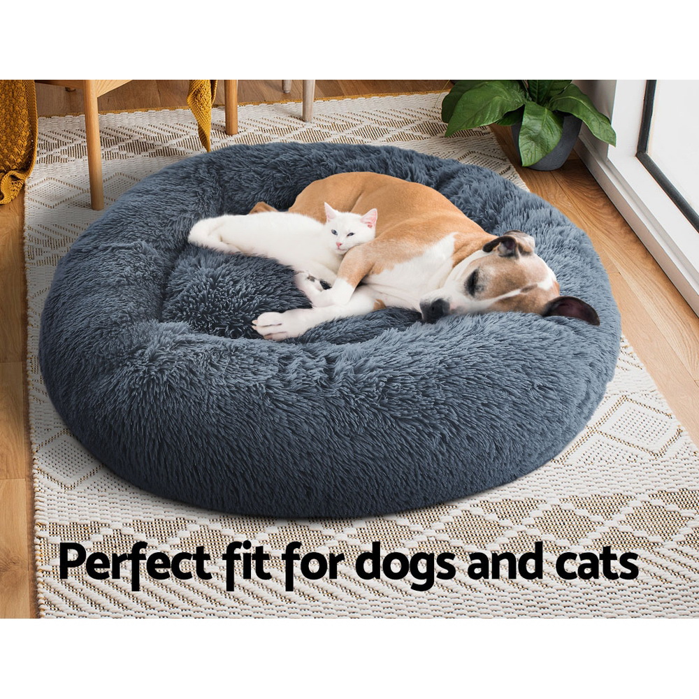 i.Pet Pet Bed Dog Cat 90cm Large Calming Soft Plush Bed Dark Grey