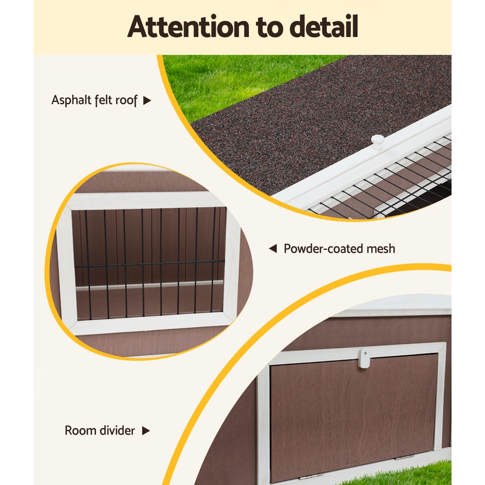 i.Pet Rabbit Hutch 124cm x 90cm x 35cm Chicken Coop Large Outdoor Wooden Run Cage House