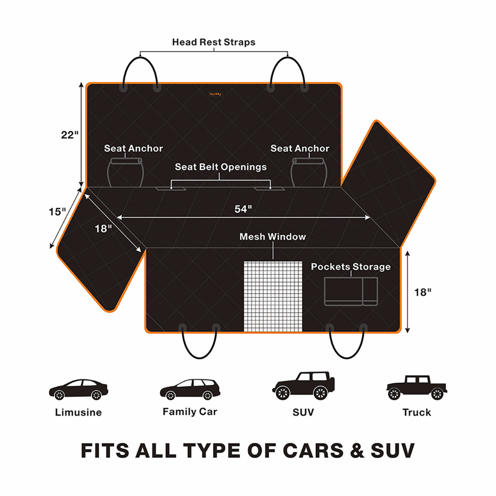 Dog Car Hammock Back Seat Cover w/ Mesh Window