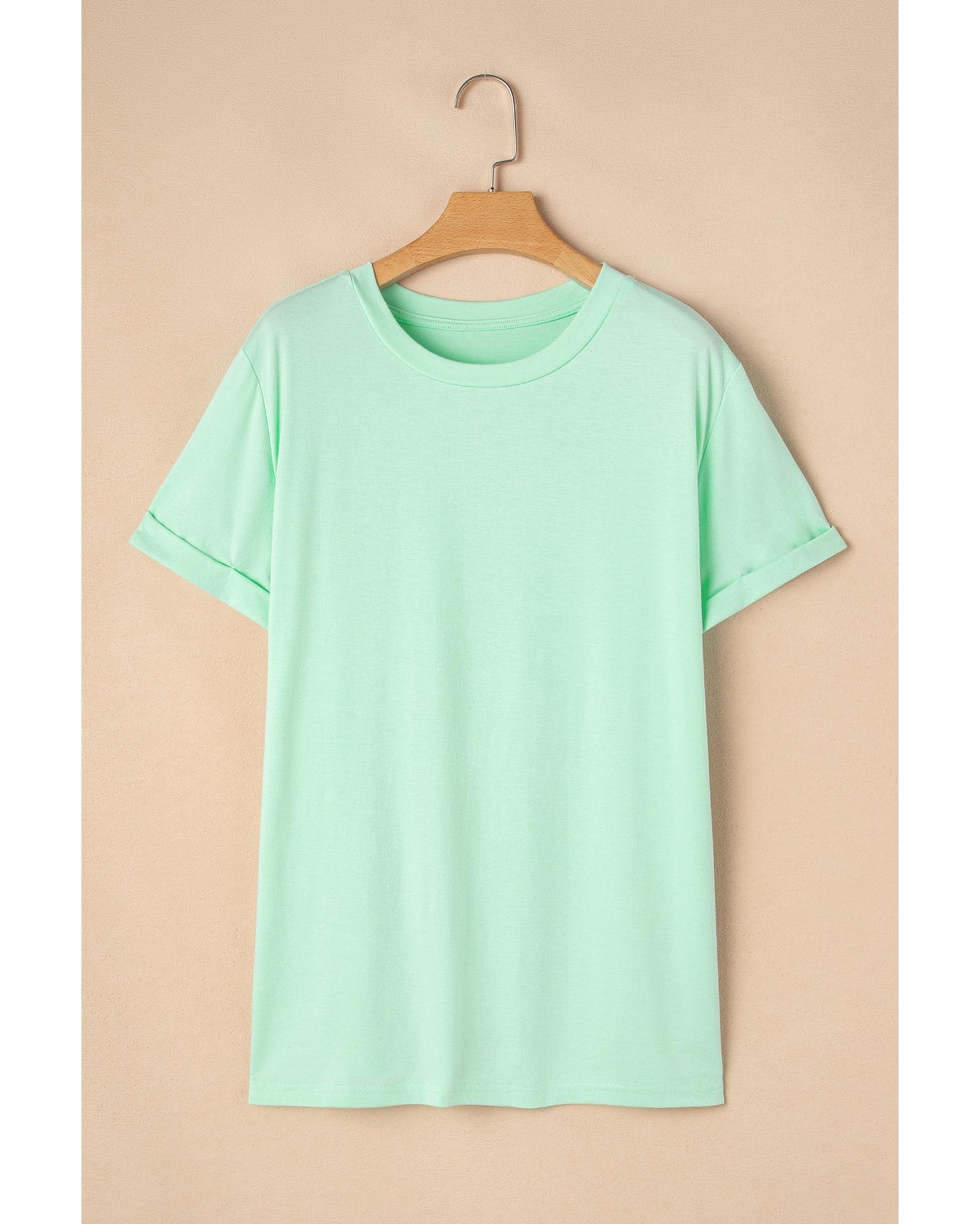 Iceland Blue Round Neck Rolled Sleeve Plus Size T-shirt – 1X