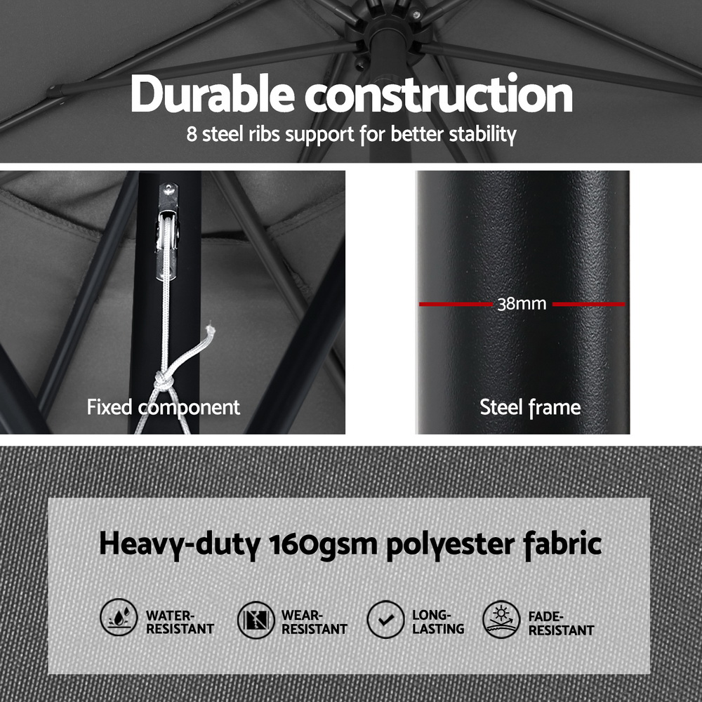 Instahut 2.7m Outdoor Umbrella w/Base Pole Stand Garden Sun Charcoal