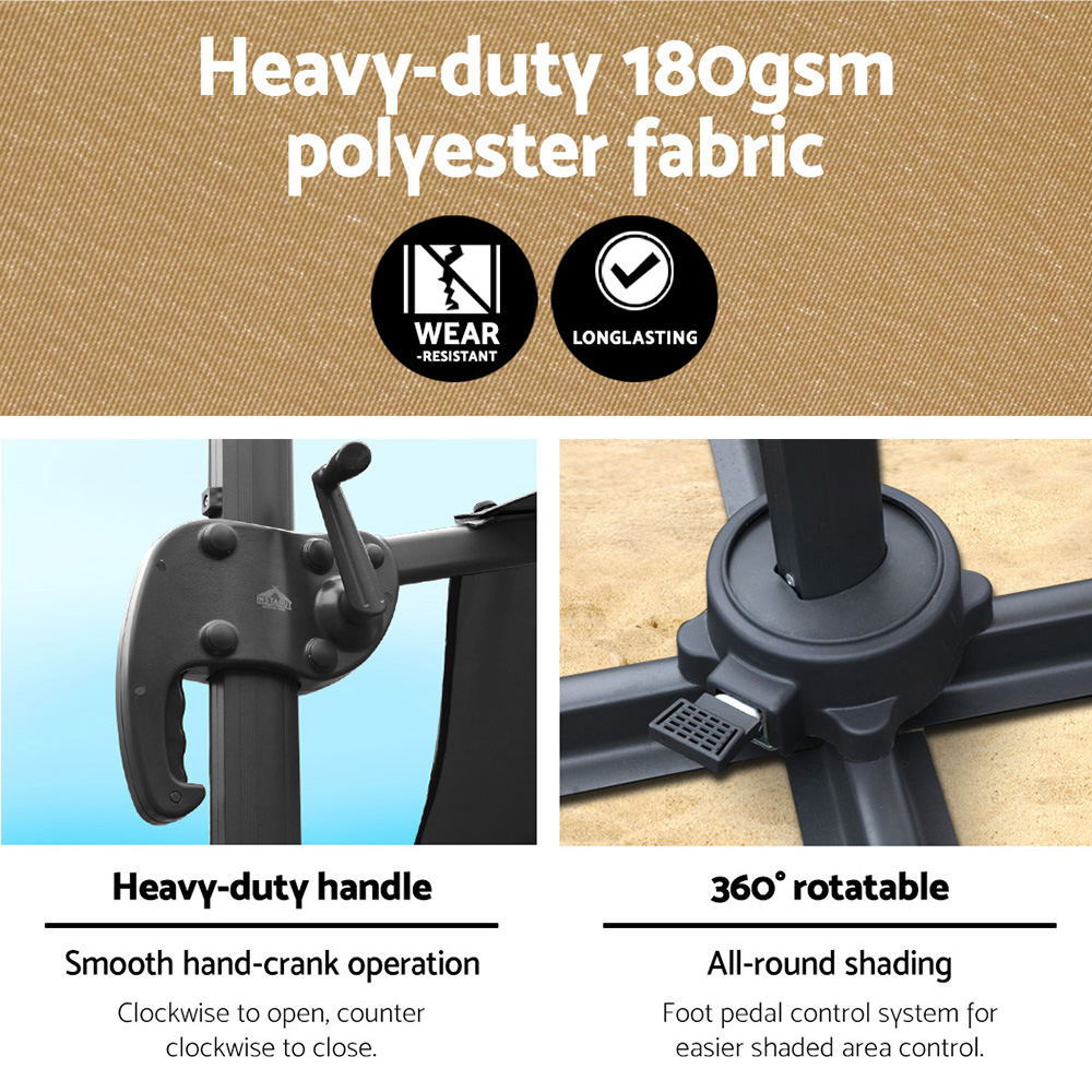 Instahut 3m Outdoor Umbrella Cantilever 360 Degree Tilt Beach Roma Beige