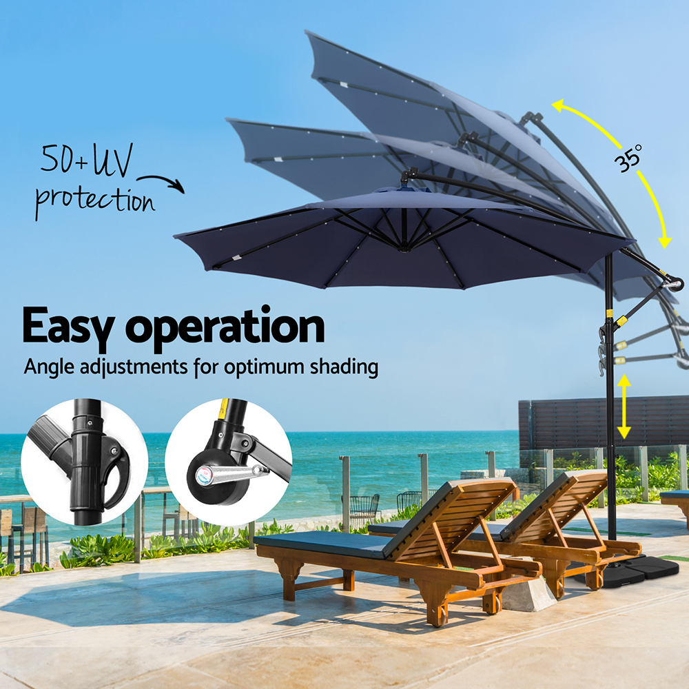 Instahut Outdoor Umbrella 3M Cantilever Beach LED w/Base Garden Shade Patio Navy