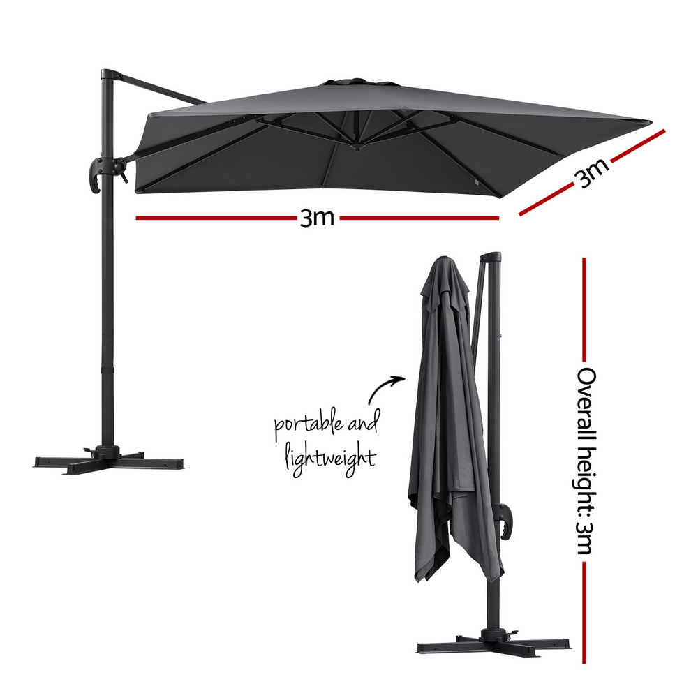 Instahut Outdoor Umbrella 3m Umbrellas Cantilever Stand Sun Roma 360 Degree Charcoal