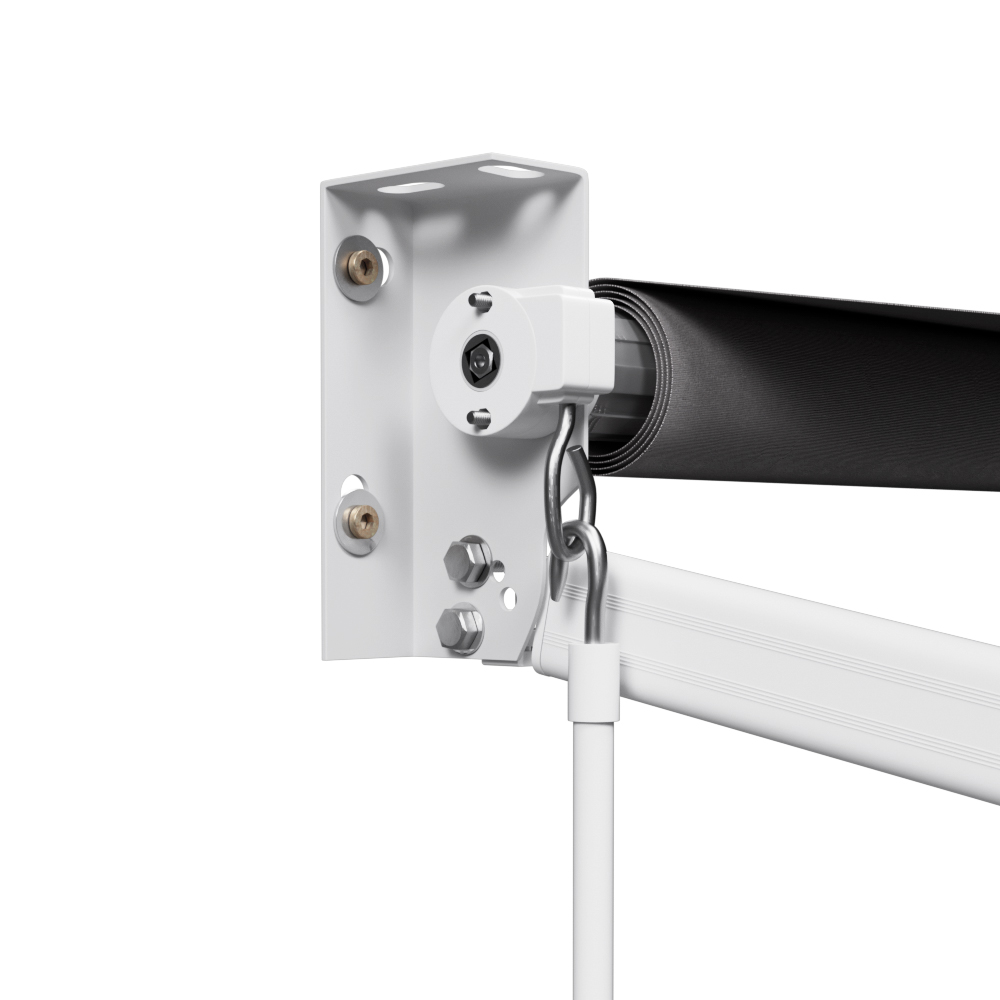To open or retract the shade, a hand crank is provided for easy operation. Mounting the frame and shade is also made simple with the included wall brackets.