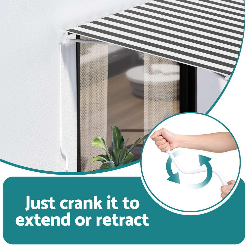 Instahut Retractable Folding Arm Awning Motorised Sunshade 2.5Mx2M Grey White