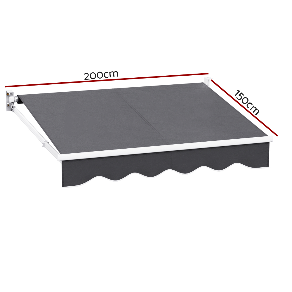 Instahut Retractable Folding Arm Awning Motorised Sunshade 2Mx1.5M Grey
