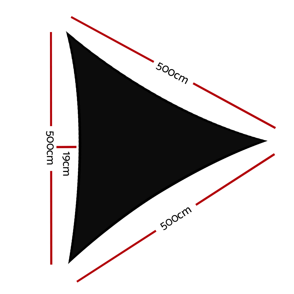 Instahut Shade Sail 5x5x5m Triangle 280GSM 98% Black Shade Cloth