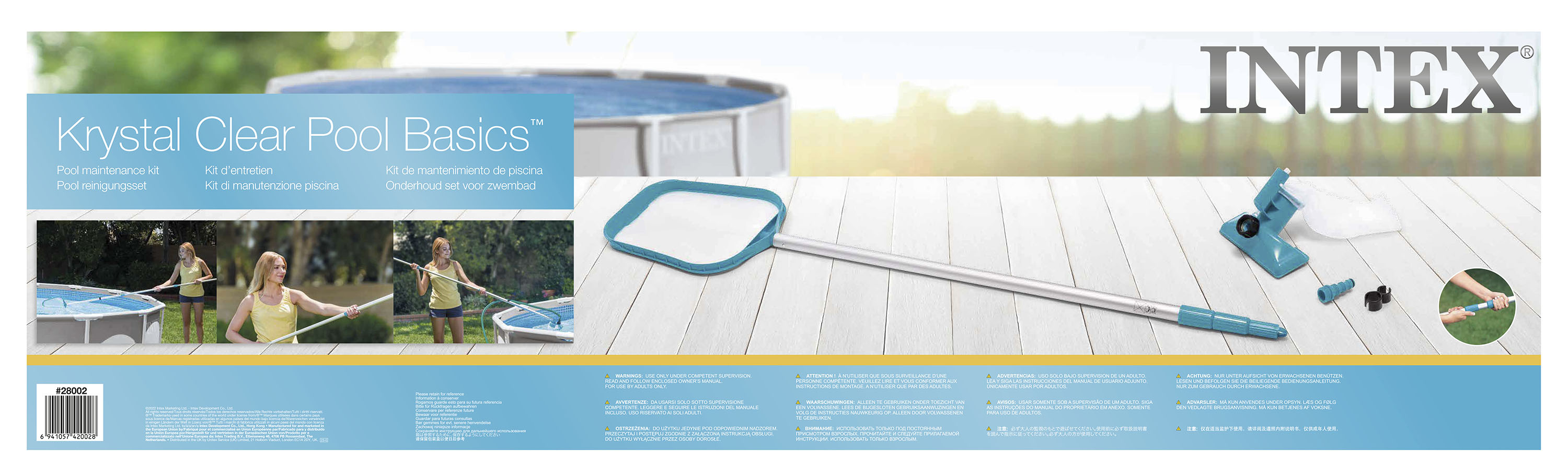 Keep your Intex pools clean and fresh with Intex Pool Maintenance Kit. Kit includes 94in telescoping aluminum shaft for use with 16ft and below pools. Also includes interchangeable vacuum and skimmer heads to collect debris from pool and keep it nice and clean.