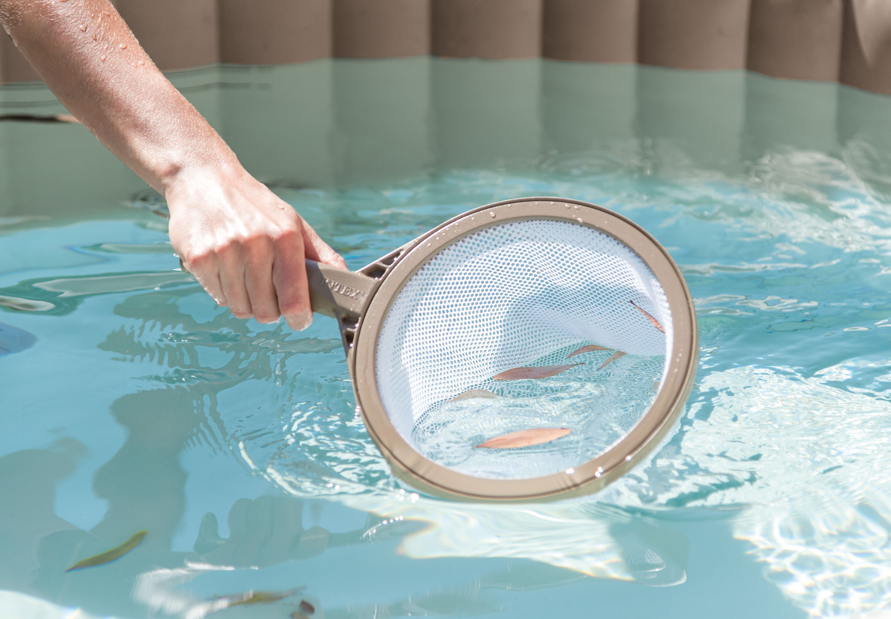 – Durable mesh skimmer net helps fish out leaves and other debris.