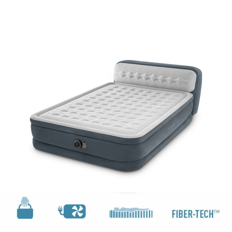 Queen Dura-Beam Deluxe Series Ultra Plush Headboard AirbedExperience a cosy and comfortable night’s sleep with the Ultra Plush Headboard Bed. The functional�built-in headboard provides back support when lounging or watching TV. It also prevents pillows�from falling on the floor while sleeping.Dual-layer comfort top surface� provides a cushioned feel for�maximum comfort. Powerful internal pump makes inflation and deflation easy and hassle-free.Details: