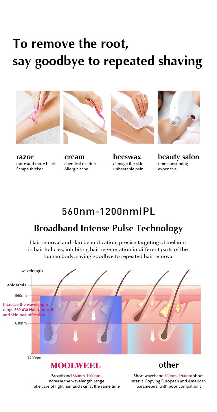 - IPL technology for permanent hair reduction