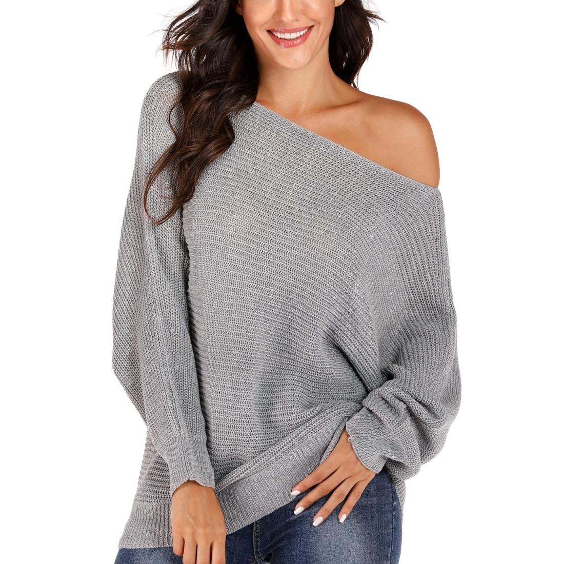 • 1 x Irregular Bat Sleeve Sweater Grey – L