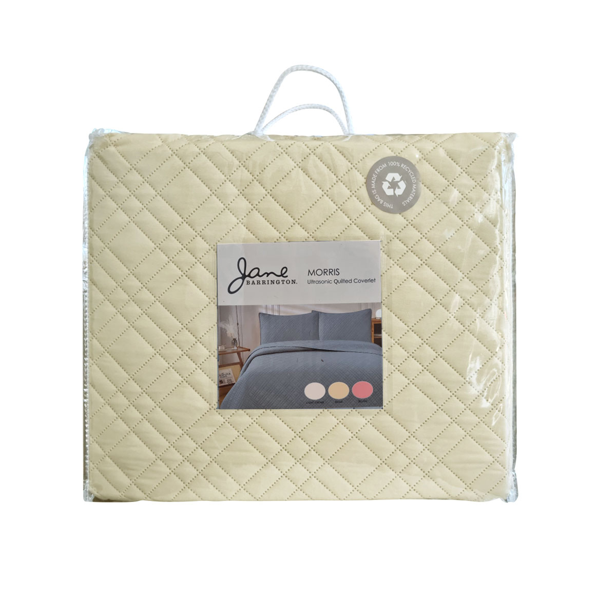 Jane Barrington Morris Beige Ultrasonic Embossed Lightly Quilted Reversible Coverlet Set King