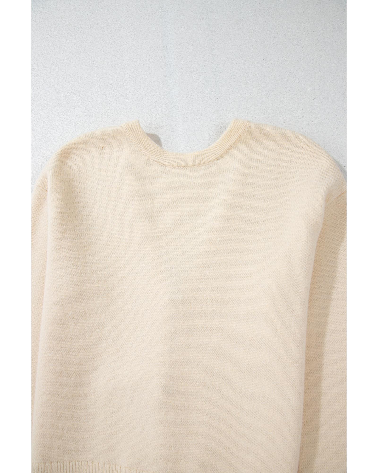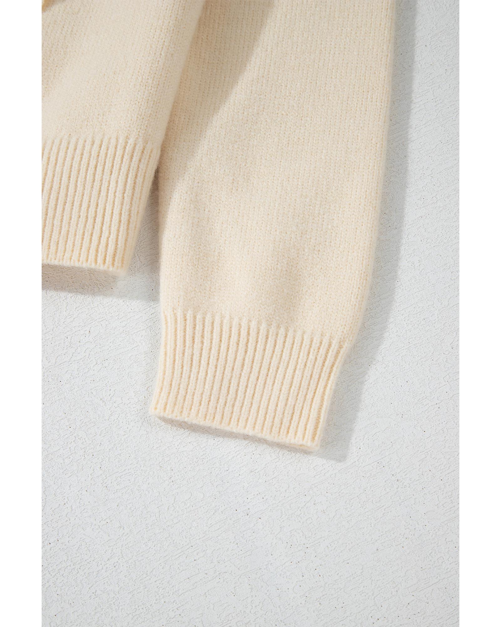 Beige Plain Knitted Buttoned V Neck Cardigan - M