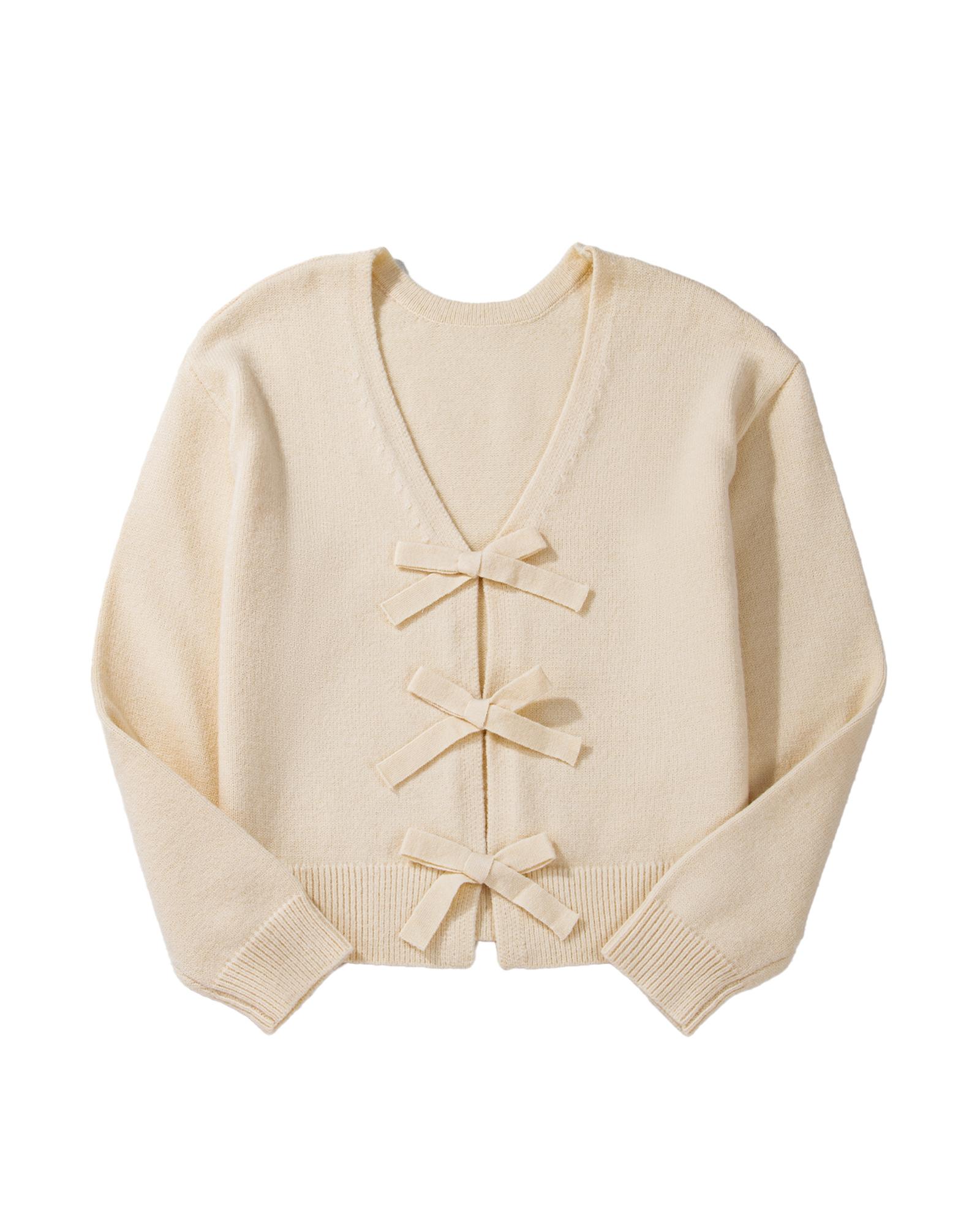 Jet Stream Bowknot Front Loose V Neck Knitted Cardigan – L