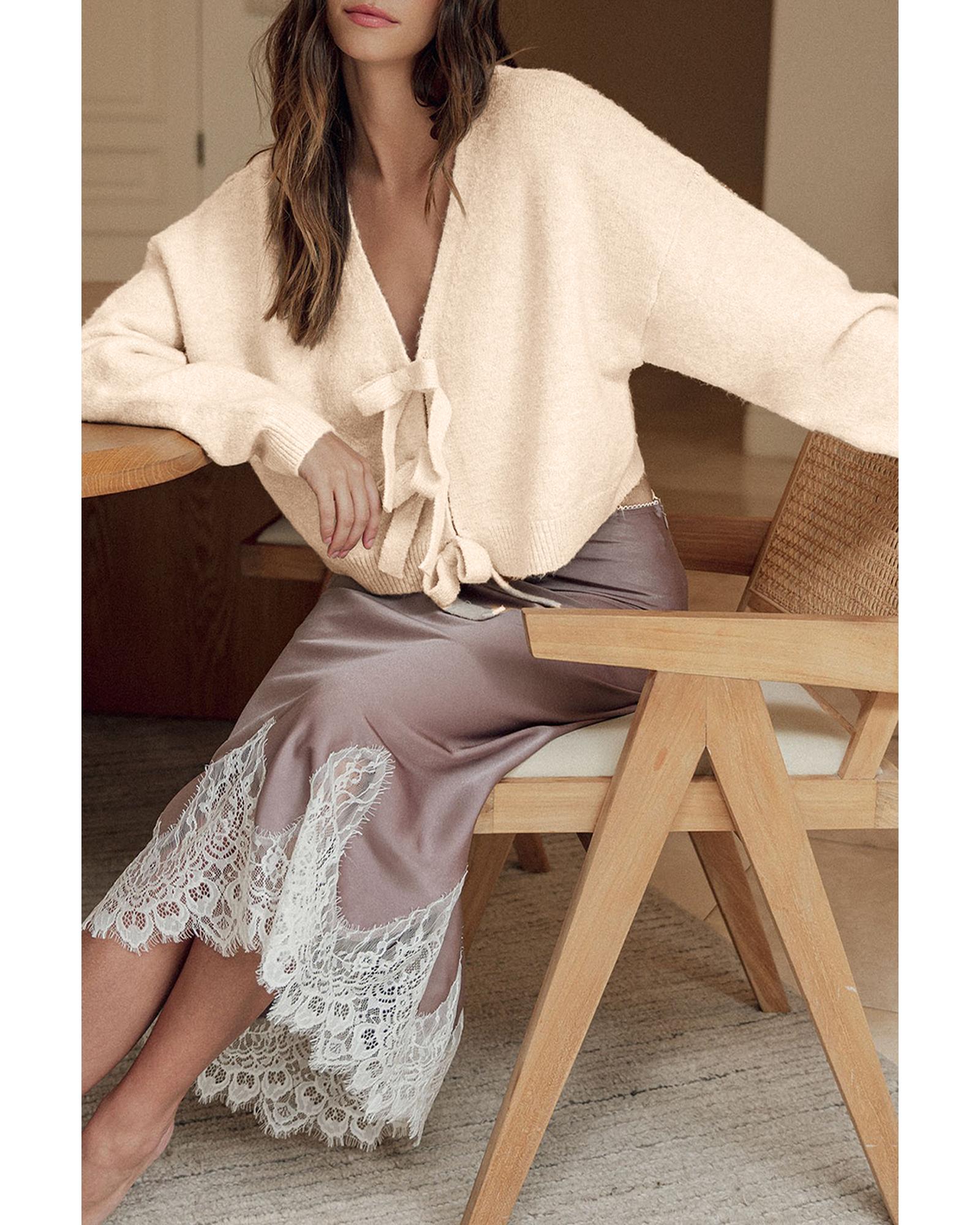 Jet Stream Bowknot Front Loose V Neck Knitted Cardigan – XL
