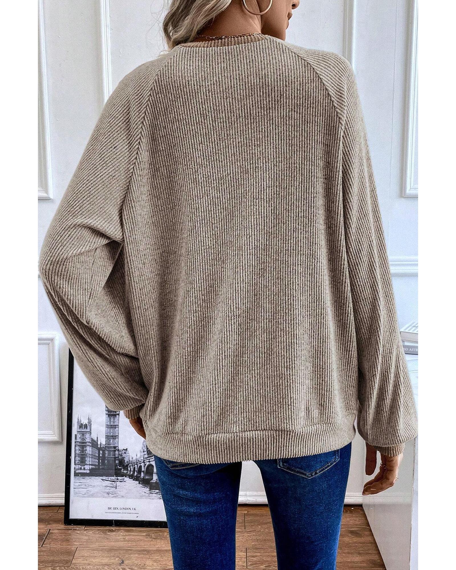 Jet Stream Color Contrast Ribbed Loose Fit Long Sleeve Top – M
