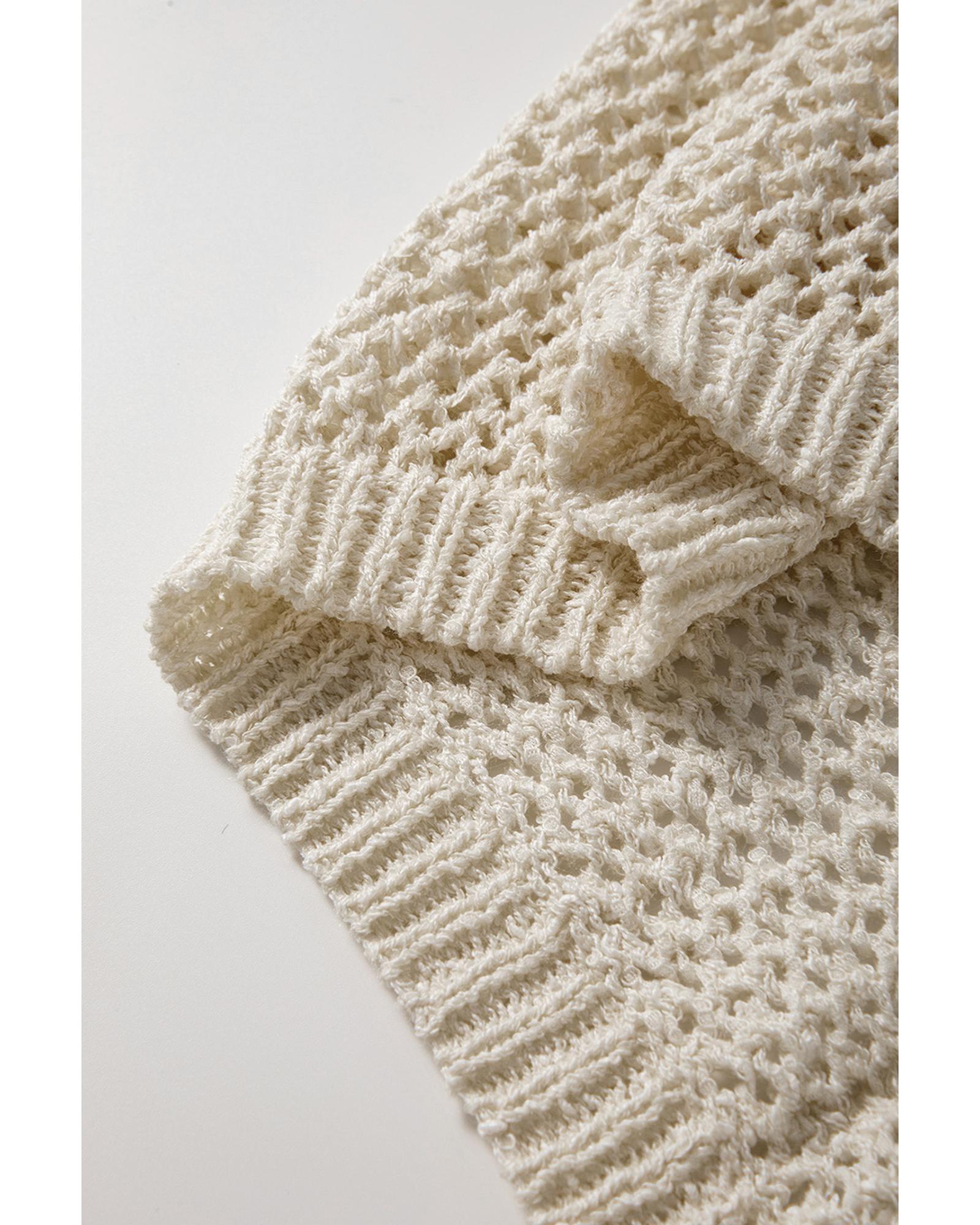 Pale Khaki Scalloped Hem V Neck Crochet Knit Vest - M
