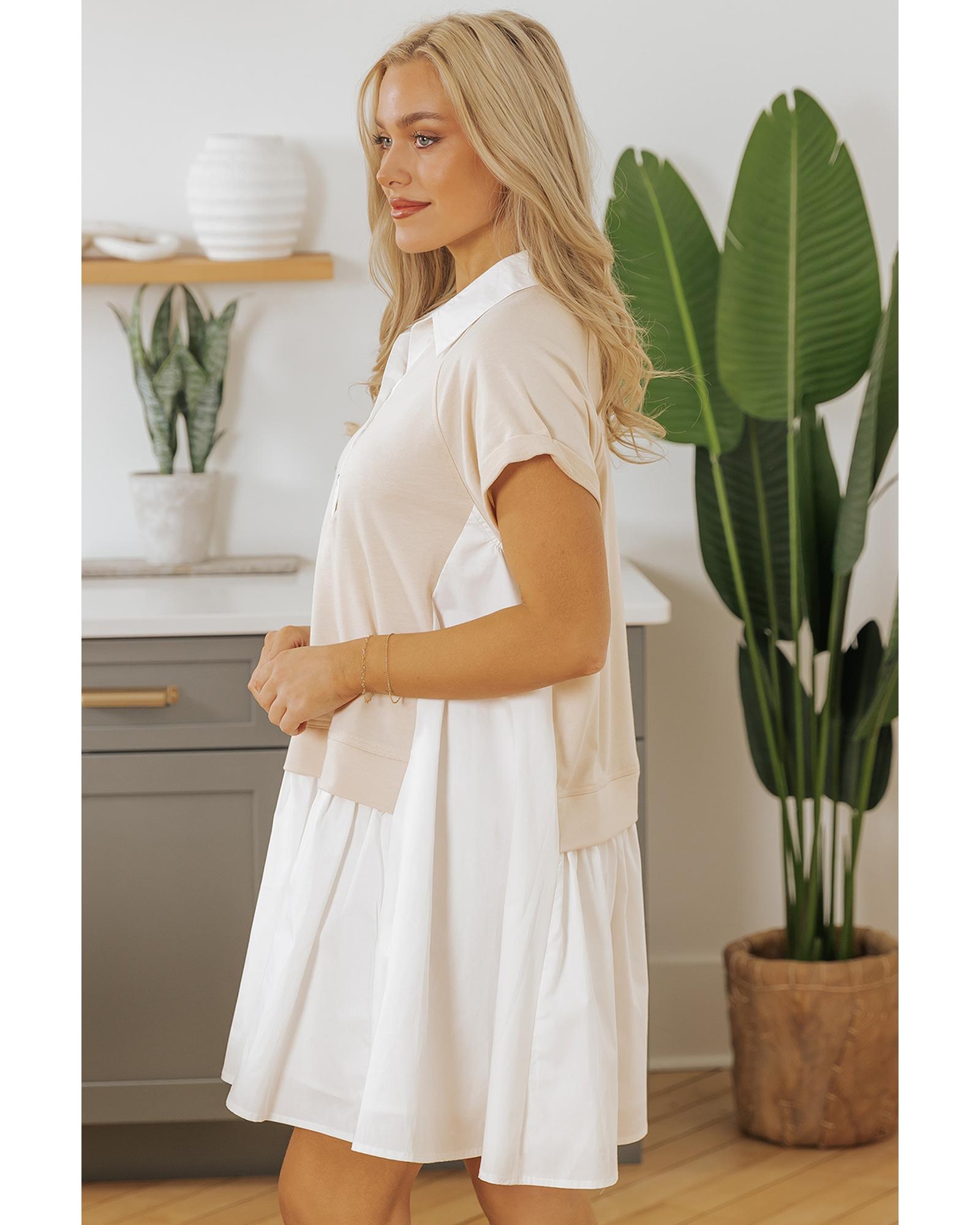 Jet Stream Shirt Collar Buttoned Patchwork Short Sleeve Mini Dress - L Original price was: $74.99.Current price is: $40.99.