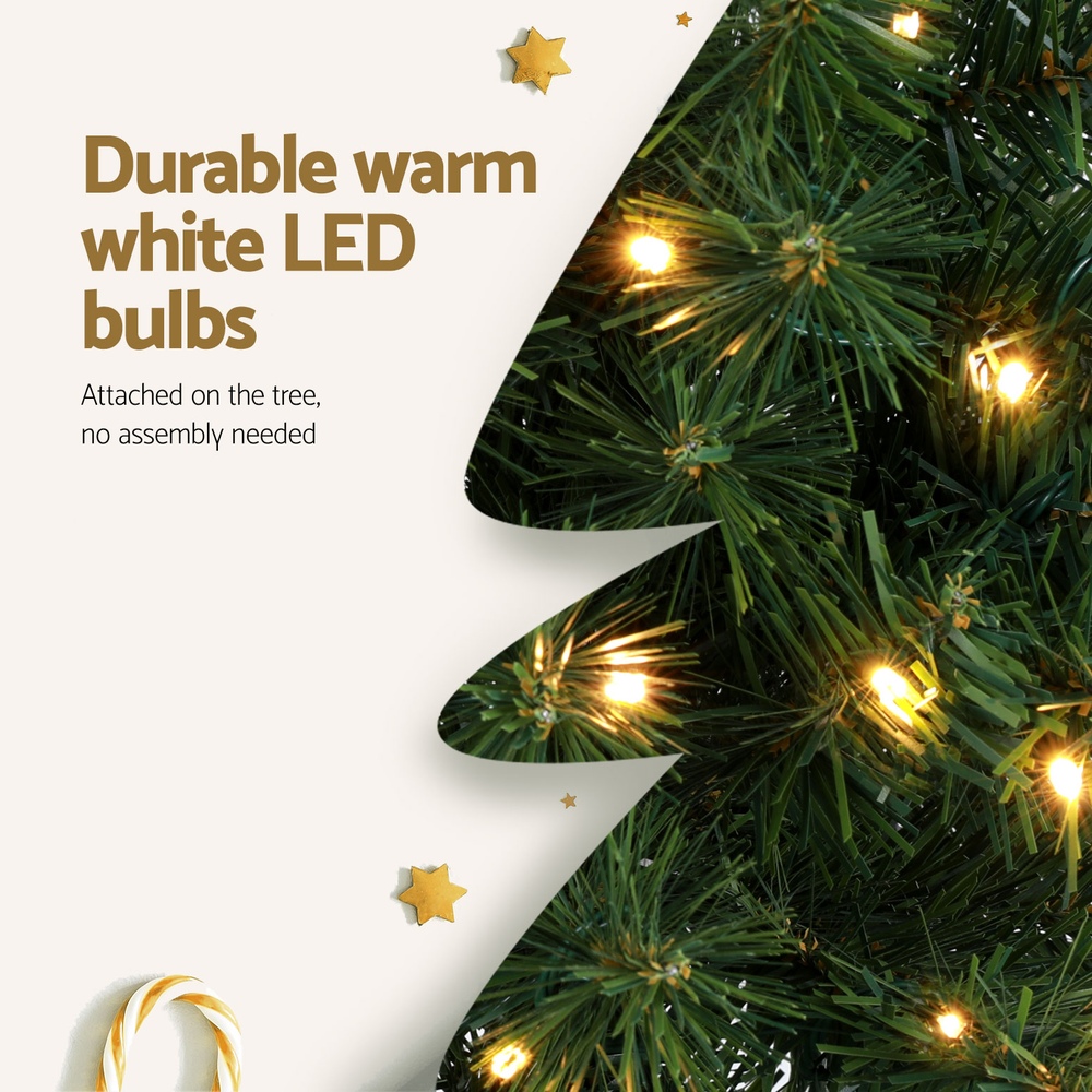 Enhance your holiday ambiance with the Jingle Jollys 2.1m Pre-lit Half Corner Christmas Tree, designed to fit perfectly in corners for space-efficient decoration. This tree features warm white LED bulbs that emit a soft, inviting glow, creating a cosy atmosphere. Crafted from non-toxic, odour-free materials and supported by a sturdy powder-coated metal stand, it ensures both safety and durability. Its simple setup and tool-free disassembly make assembly and storage effortless, making it an ideal choice for bringing festive cheer to any corner of your home.