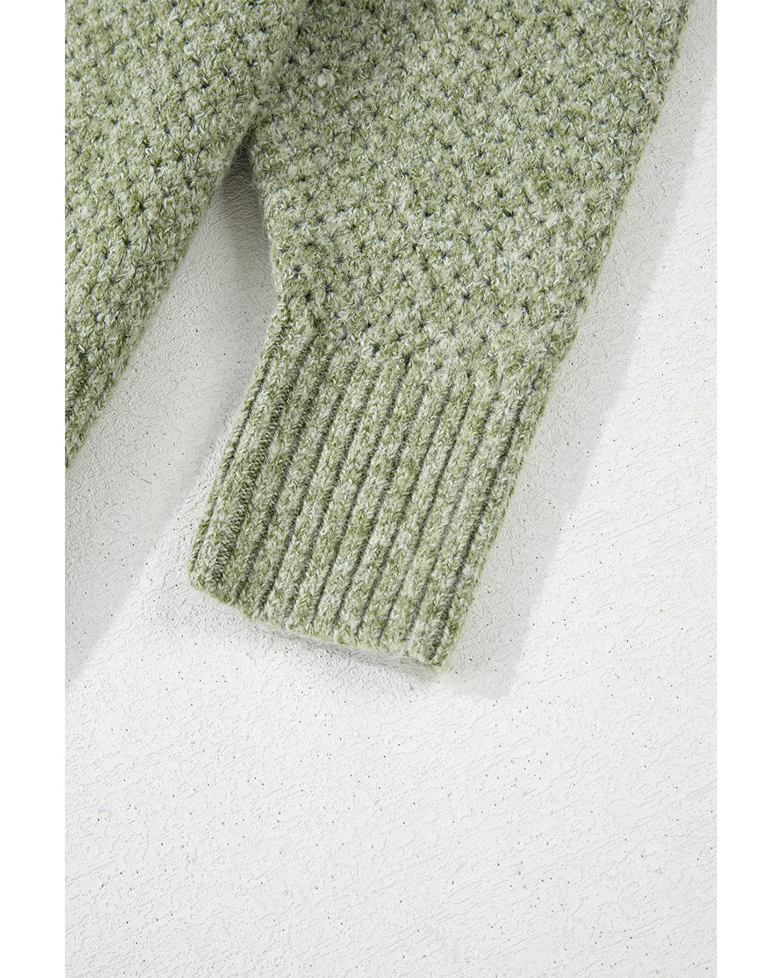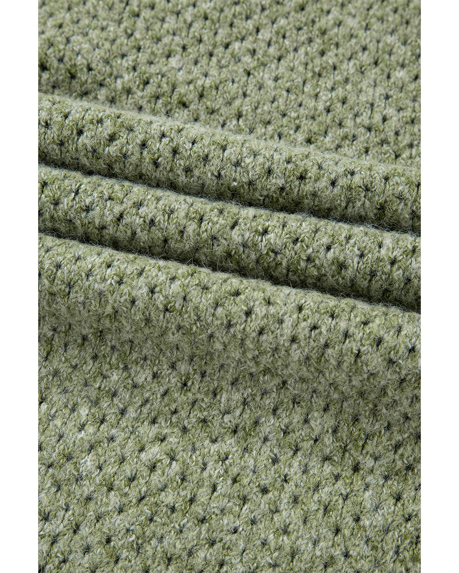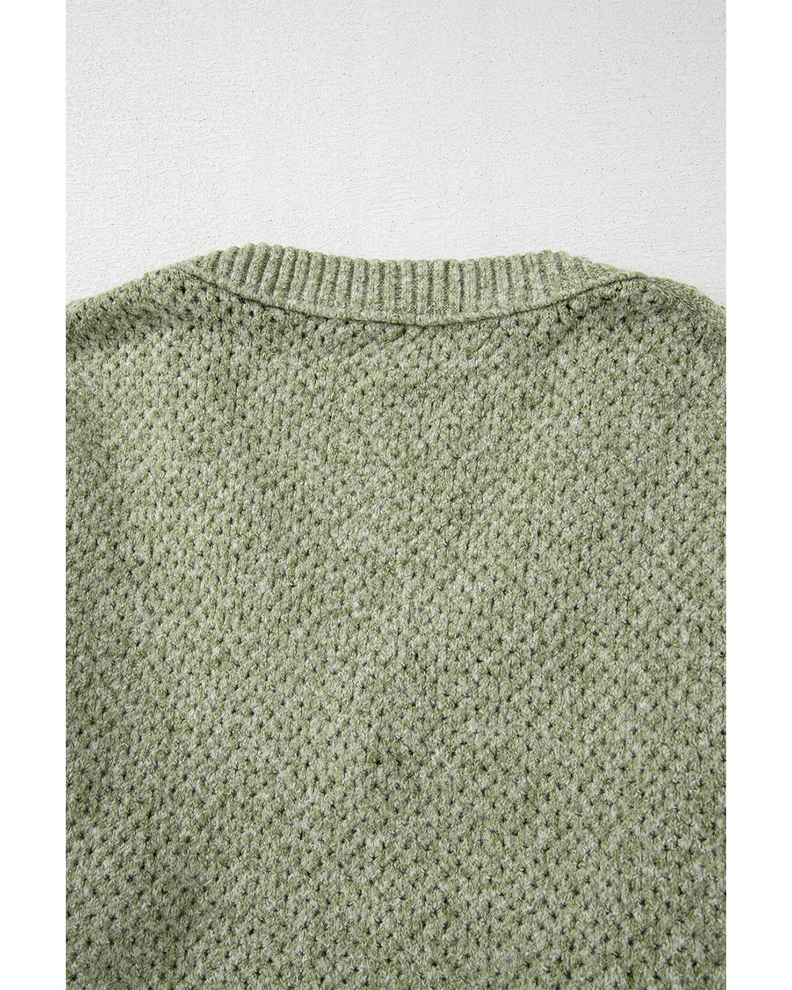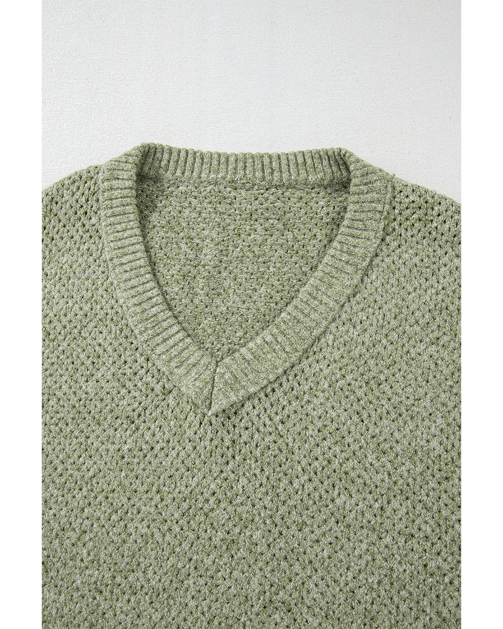 Jungle Green Loose Eyelet V Neck Drop Shoulder Sweater – L