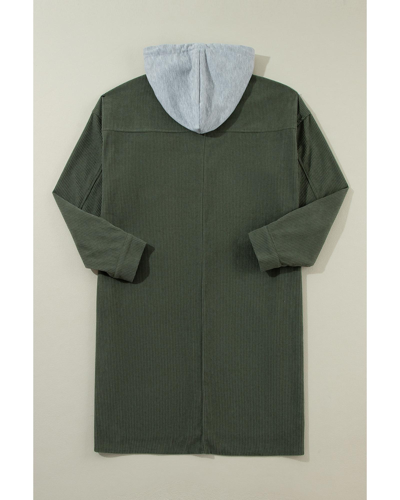 Jungle Green Oversized Corduroy Contrast Hooded Shacket - L