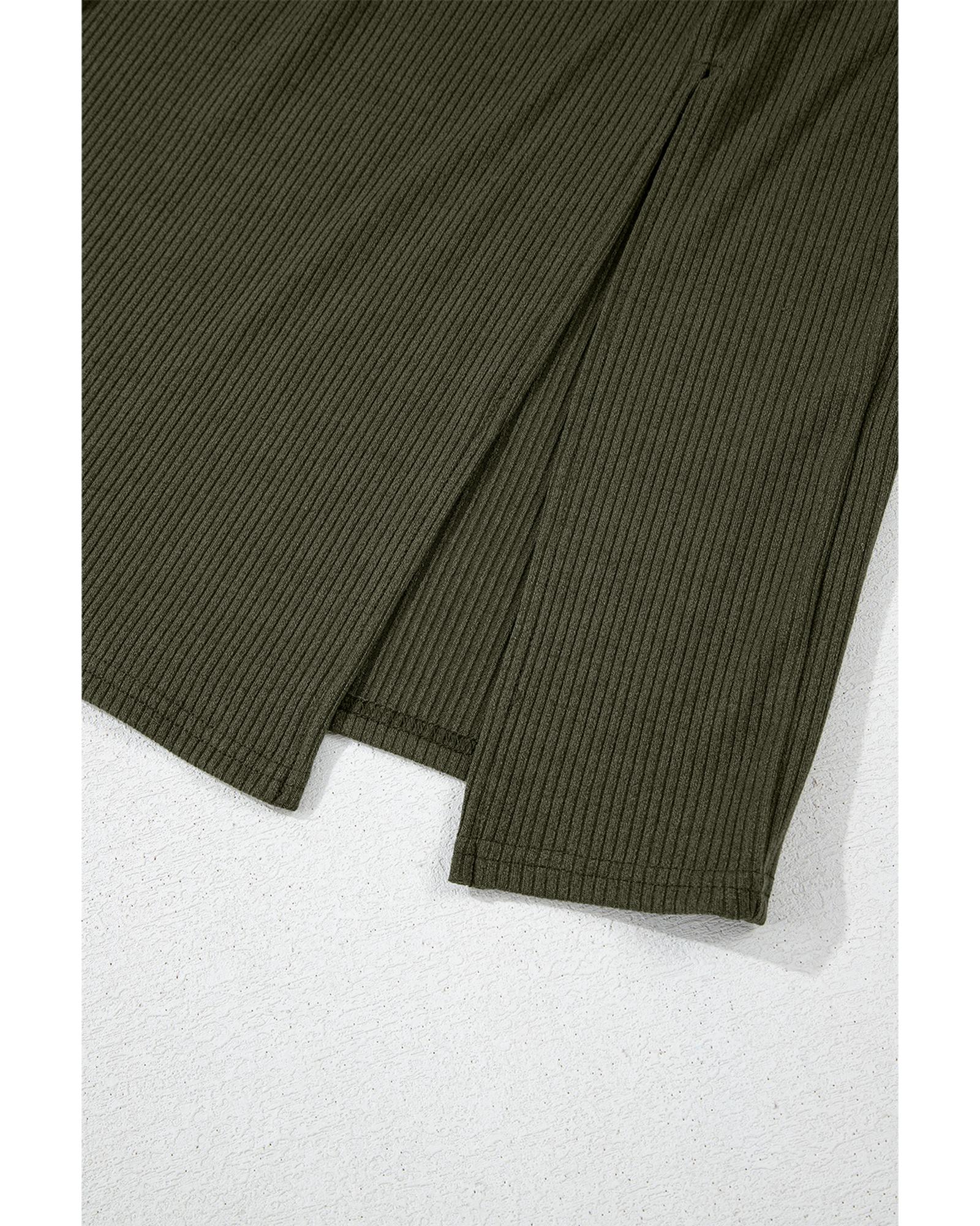 Jungle Green Ribbed Side Slit Ruched Slim Fit Long Sleeve Mini Dress - XL