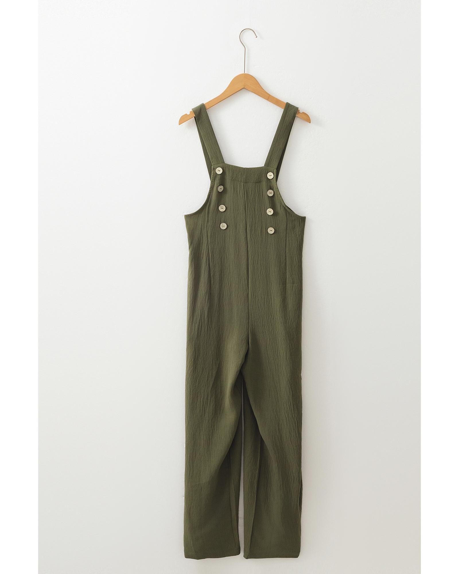 Jungle Green Solid Color Buttoned Straight Leg Overall – M