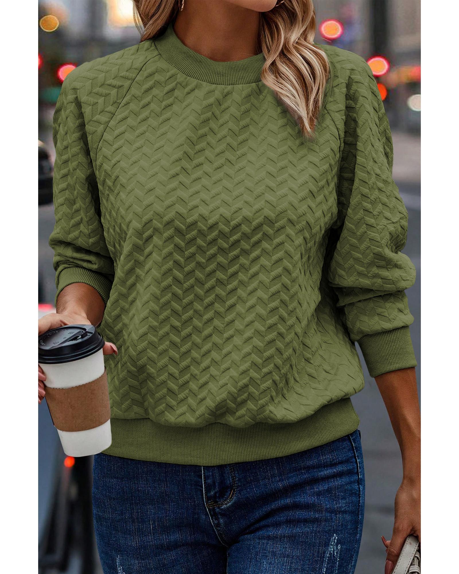 Jungle Green Solid Textured Raglan Sleeve Pullover Sweatshirt – XL