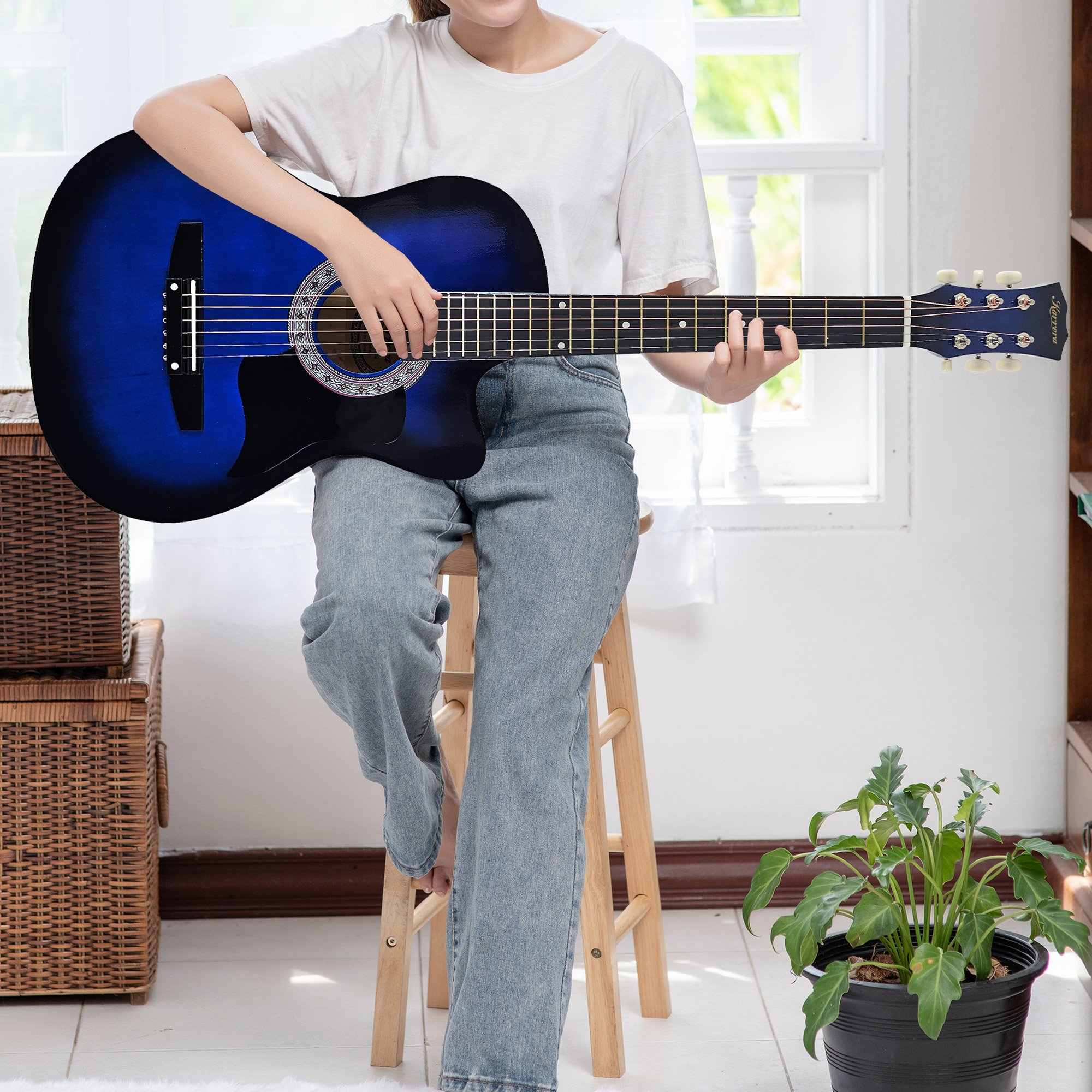 Karrera 38in Cutaway Acoustic Guitar with guitar bag – Blue Burst