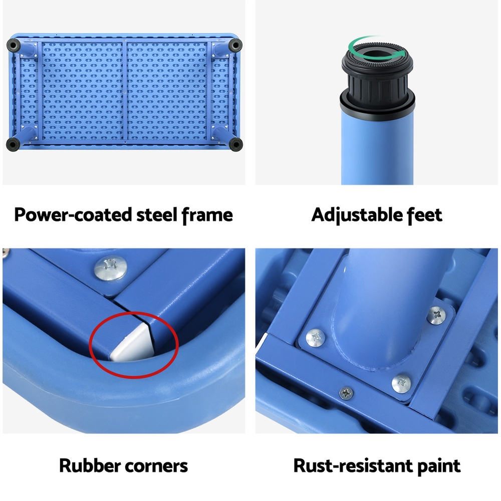 If your kids love getting creative, you’ll love the Keezi Kids Activity Table and Chair Set. It may look like a simple setup, but with a powder-coated steel frame and high-quality HDPE plastic exterior, the set is built for heavy-duty, long-lasting use. The set is coated with rust-resistant paint, features upgraded rounded corners for safety and comes with 8 chairs for the perfect play date. The table has a 100kg weight capacity to hold everything your child needs, and each chair has a weight capacity of 50kg. Adjustable feet ensure the table is always the perfect height for your children to play, draw, read, write or craft. You can easily use the set indoors or outdoors whatever the day requires. The chairs feature a stackable design so you can easily store them away at the end of the day. Best of all, the set is EN71 European Safety of Toys certified, so you can rest assured you made the right choice for your children. No matter the activity, the Keezi Kids Activity Table and Chair Set are ready for action.