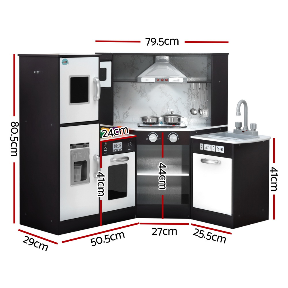 Keezi Kids Kitchen Play Set Wooden Pretend Cooking Playset w/Sounds Lights Black