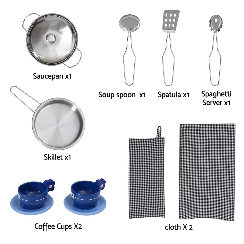 Introducing our Keezi Kids Wooden Kitchen Playset: features a sturdy MDF and solid wood construction, smooth easy-clean surfaces, ample storage, and simple assembly with detailed instructions. The perfect gift for young aspiring chefs!