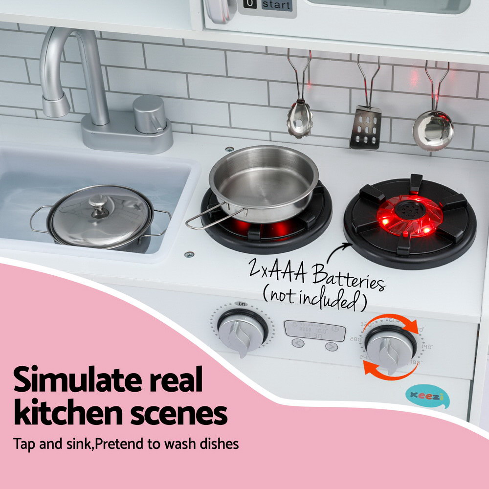Keezi Kids Wooden Pretend Kitchen Play Set Cooking Toys Pot Ice Cup Oven Blackboard 80CM White