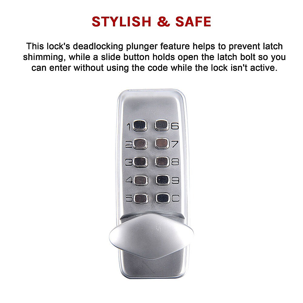With burglaries and home invasions on the rise, there's nothing like this keyless deadbolt entry door lock by Randy Travis Machinery to keep you and your belongings safe. With a spring-loaded latch, it locks automatically as soon as you close your door. No worries about leaving your keys inside. A simple, easy-to-remember code will get you right back inside.