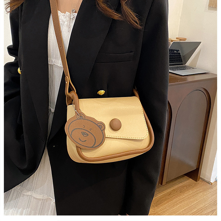 Khaki and Brown Chic PU Leather Crossbody Bag with Cute Bear Charm – Adjustable Strap Shoulder Purse