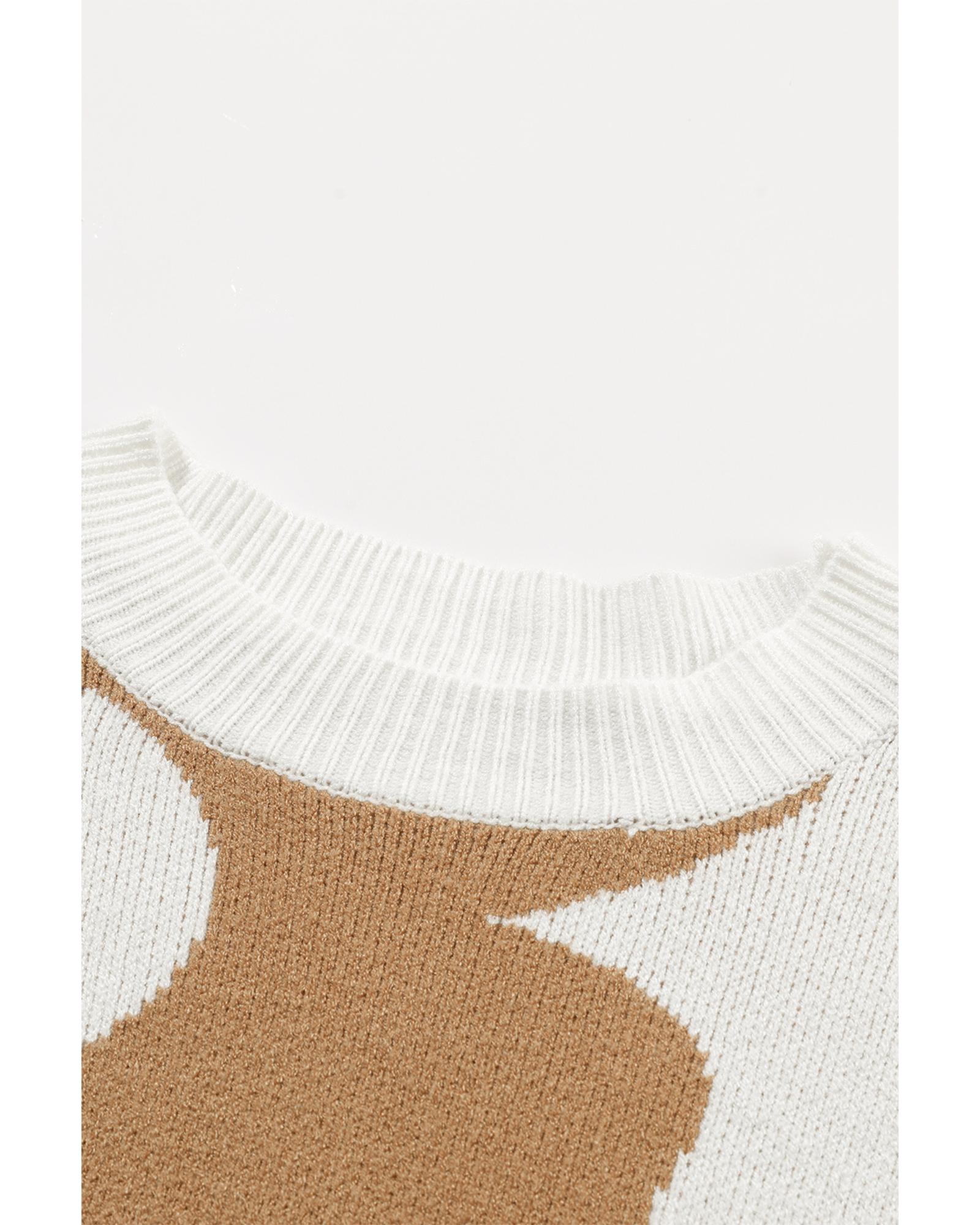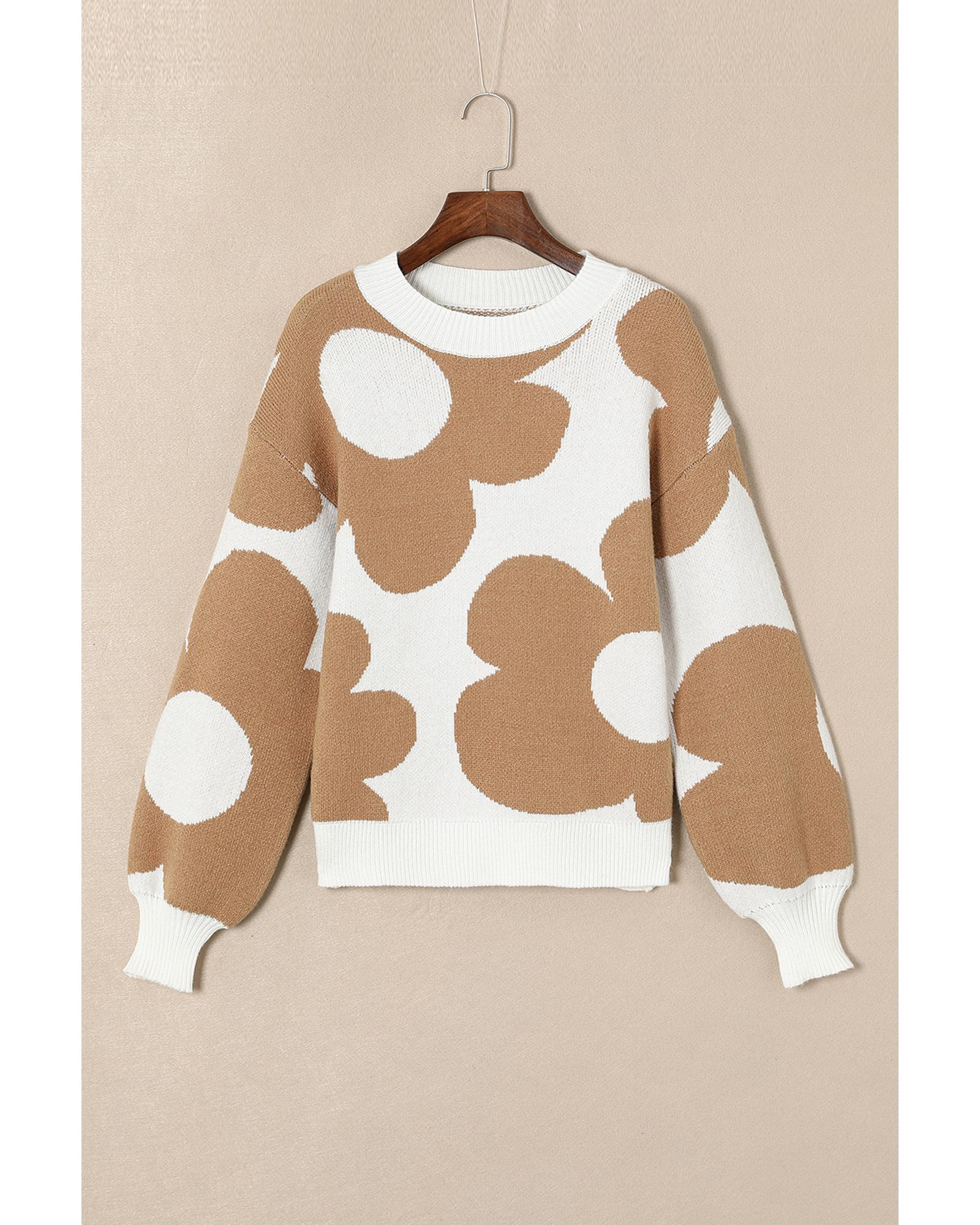 - Khaki Big Flower Pattern Drop Shoulder Sweater