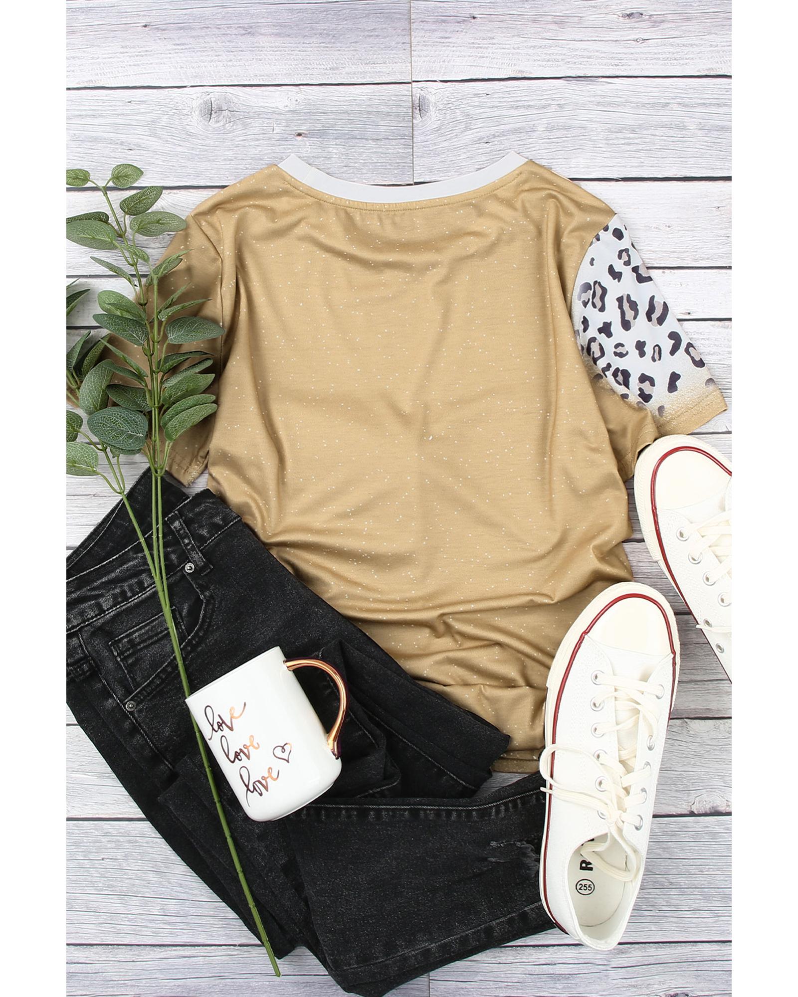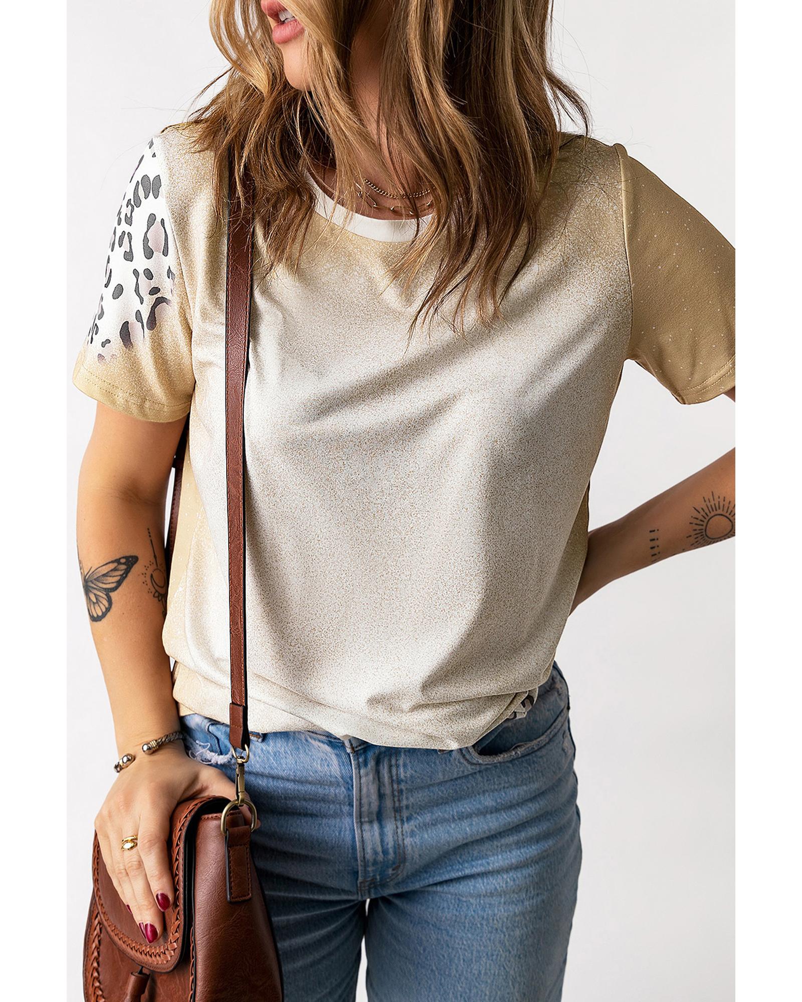 Khaki Bleached Leopard Print Crew Neck T Shirt – M