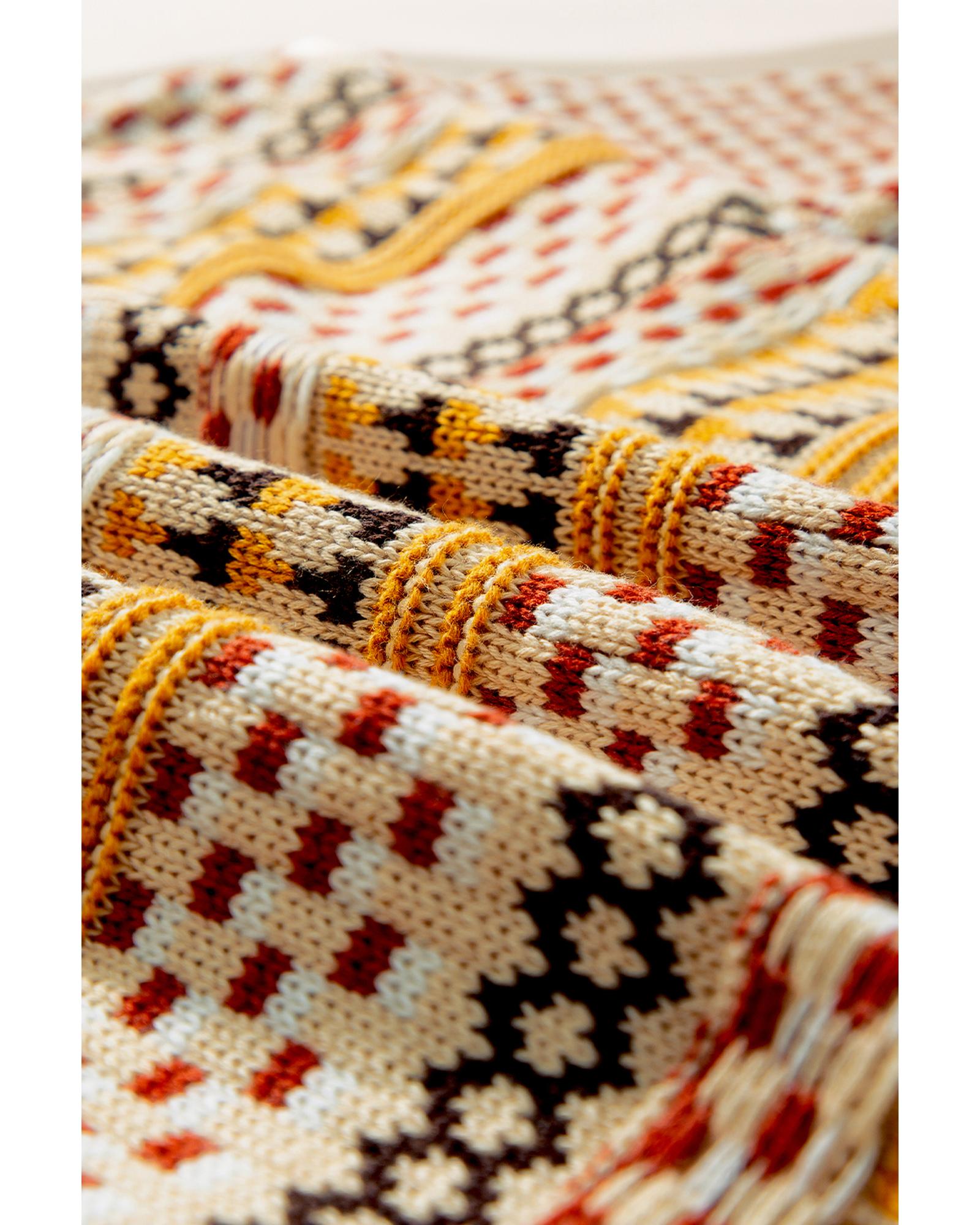 Apricot Crochet Lace Sleeve Ribbed Knit Cardigan - XL