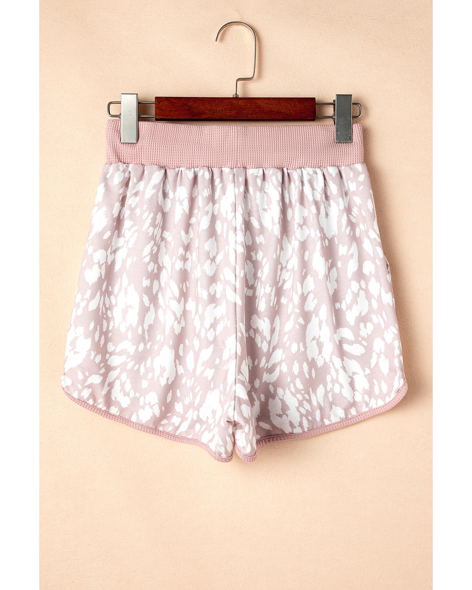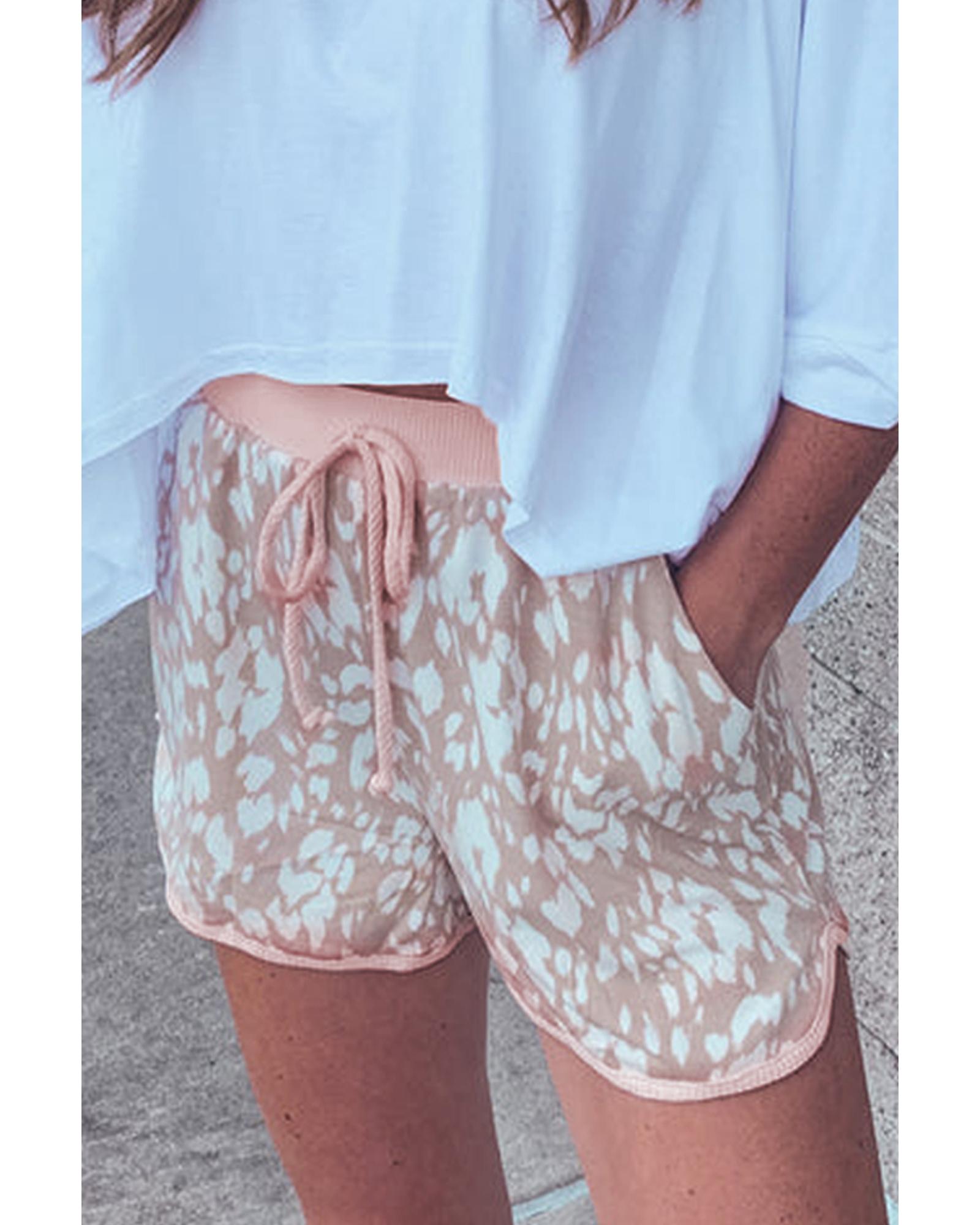 Khaki Classic Leopard Arched Hem Elastic Waist Casual Shorts – S