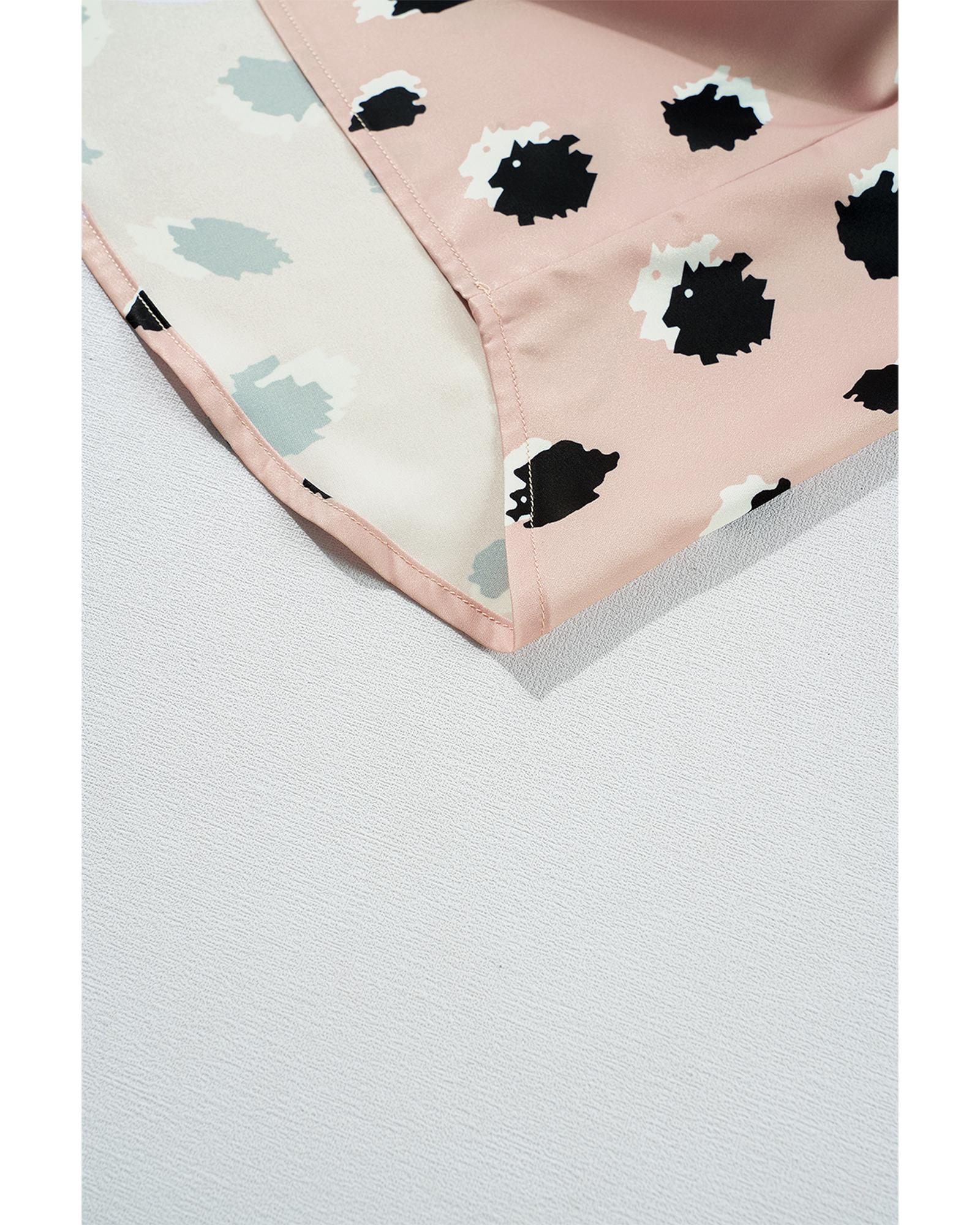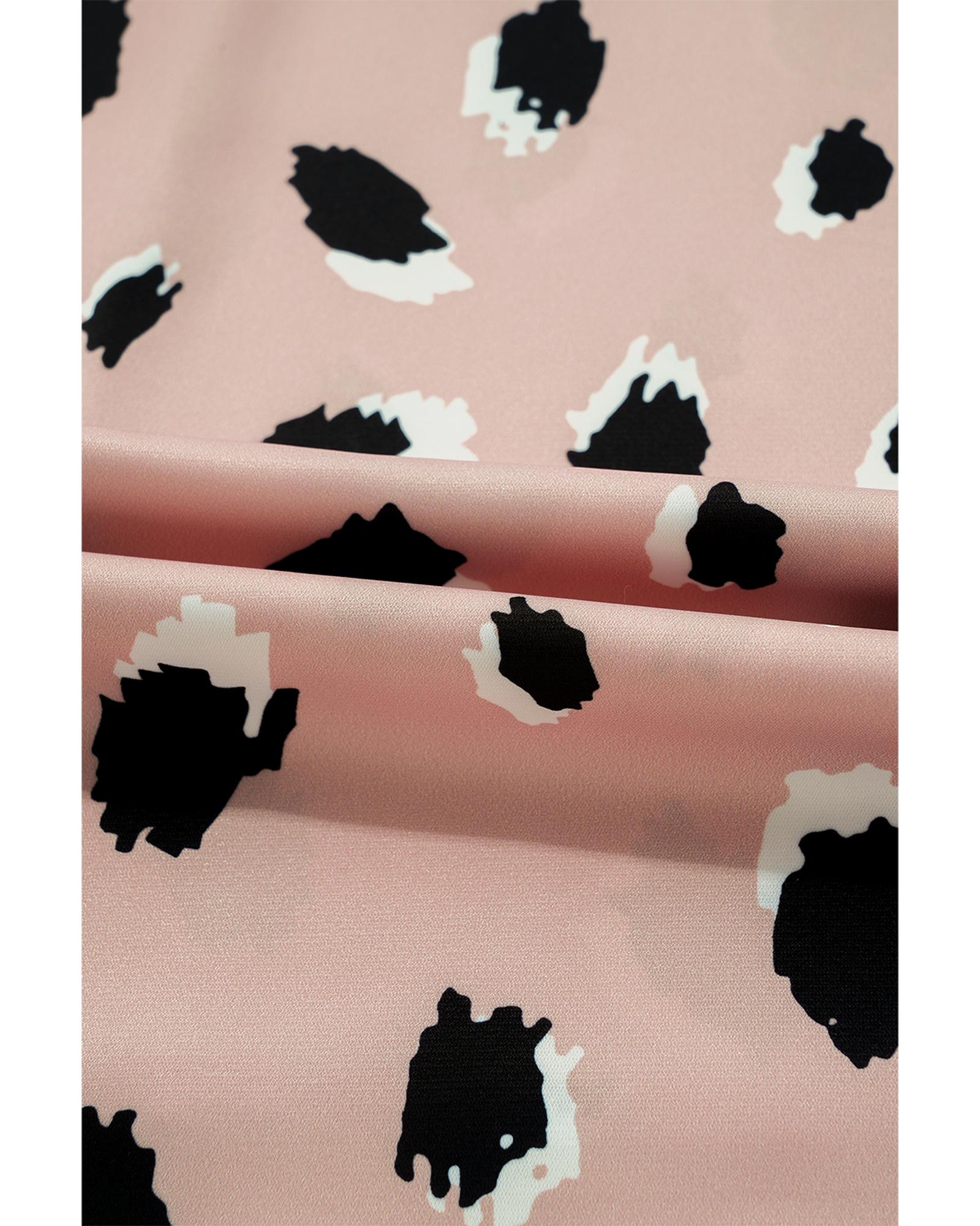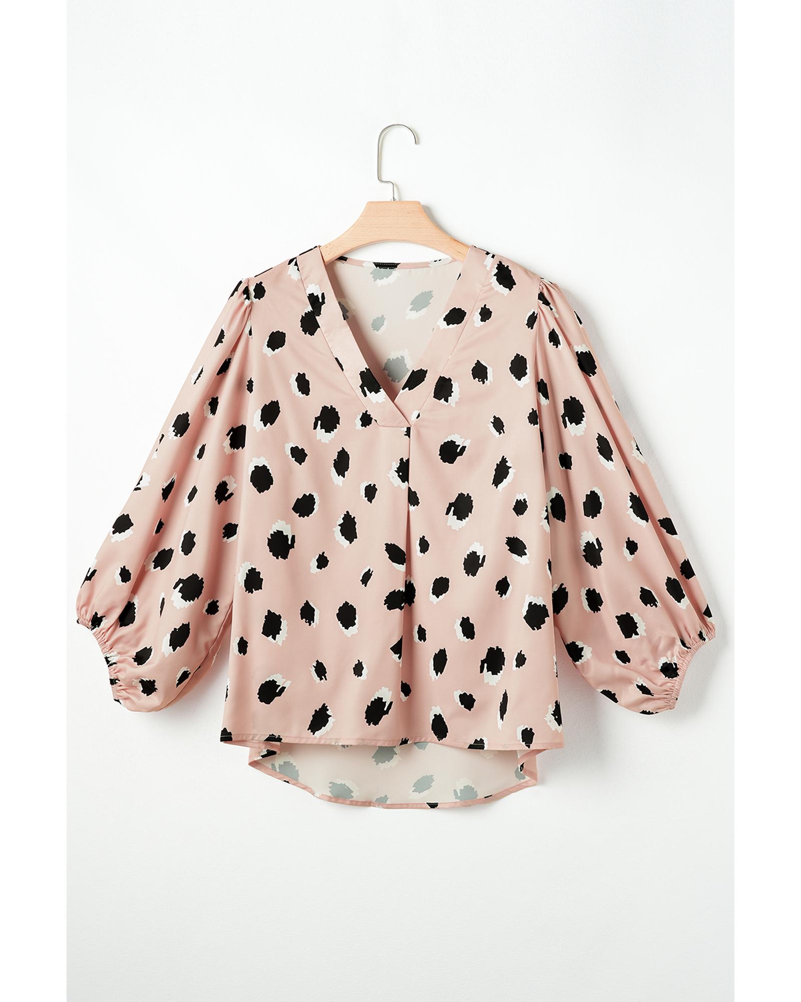 Khaki Classic Leopard V Neck Bracelet Sleeve Blouse – L