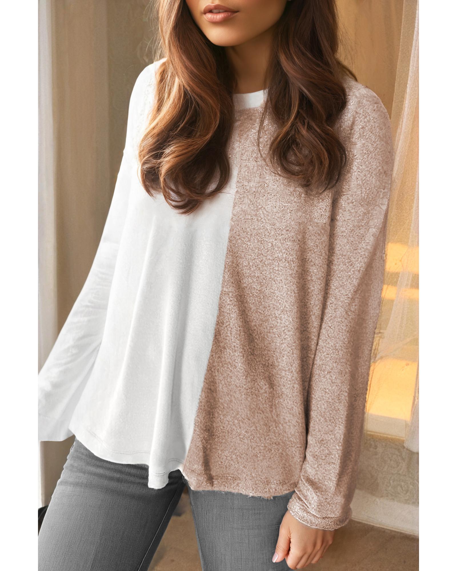 Khaki Colorblock Long Sleeve Crew Neck Top – M