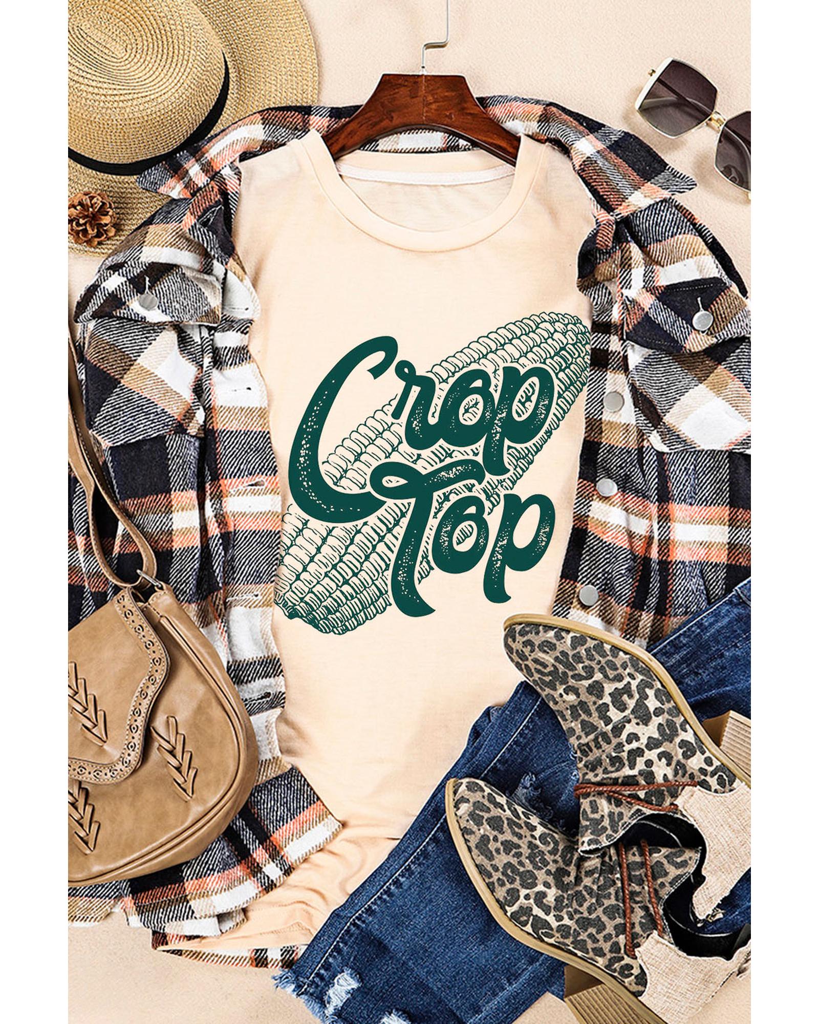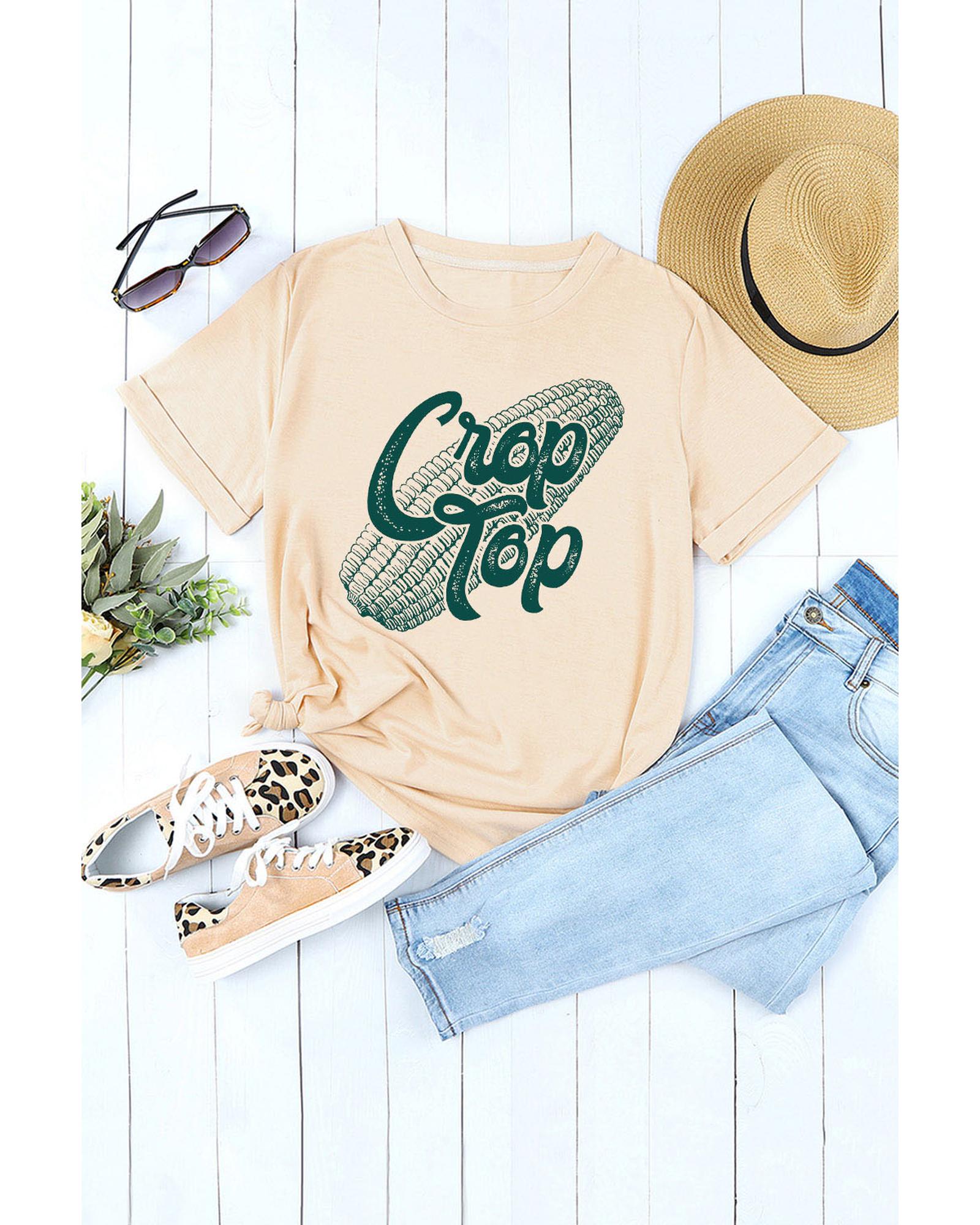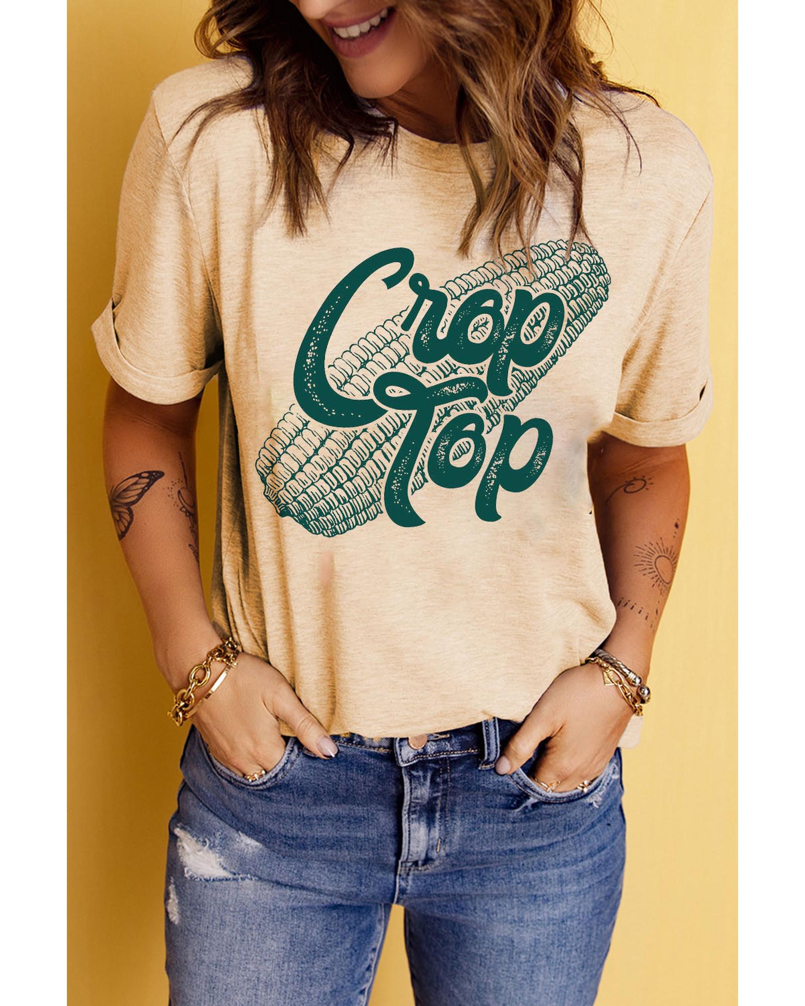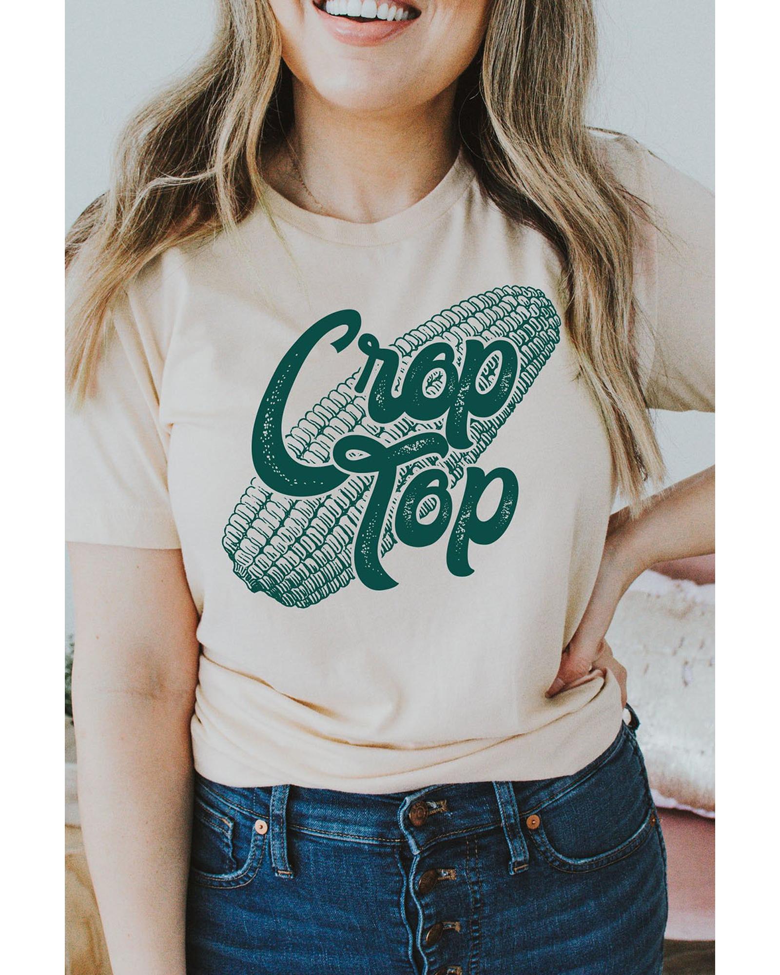 Stylish and trendy Khaki Corn Crop Top Graphic Tee Made with high